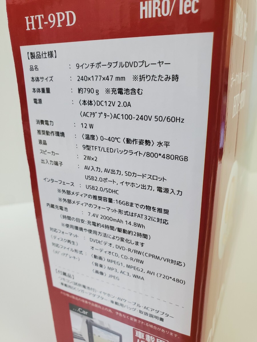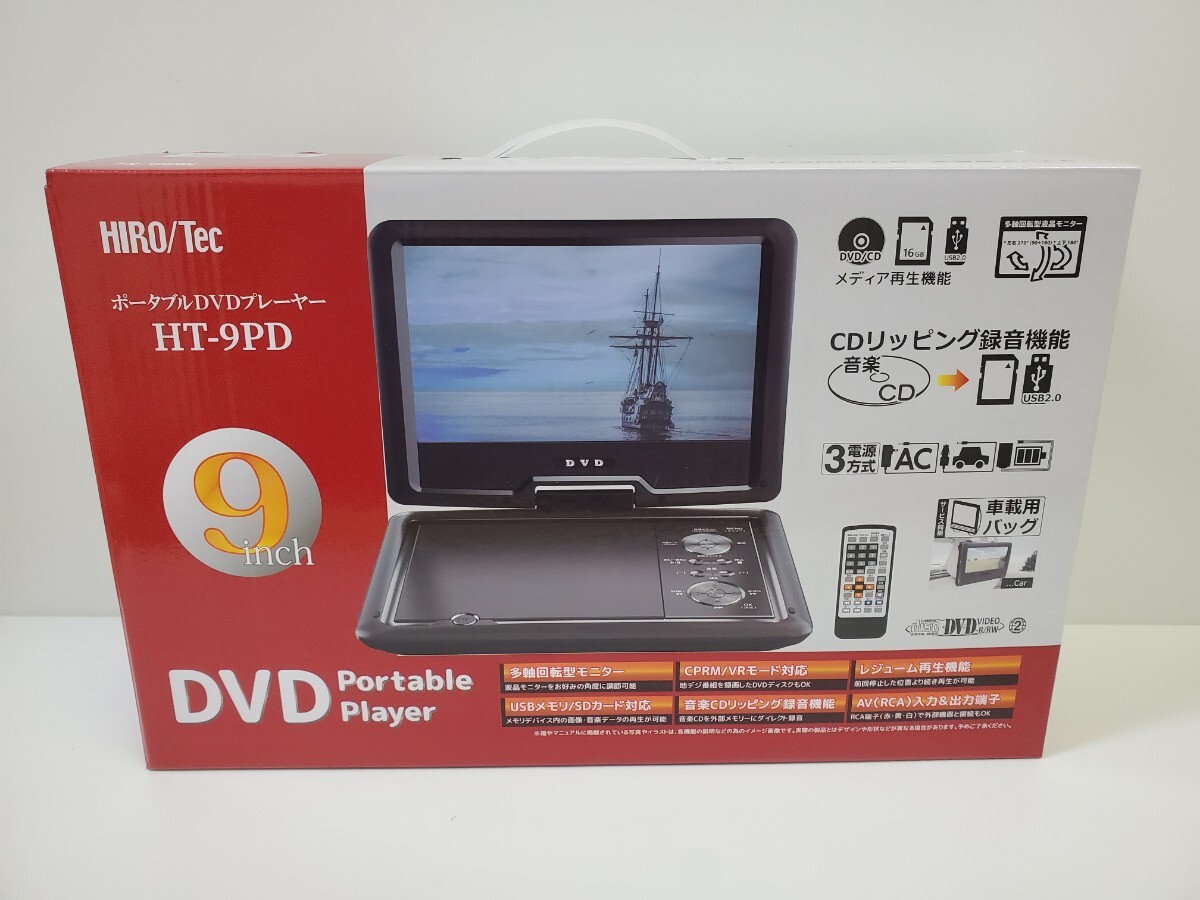 ポータブルDVDプレーヤー 9インチ HT-9PD マルチプレーヤー リモコン AC DC 充電式USBメモリ SDカード DVDプレイヤー 車対応 ★to-20