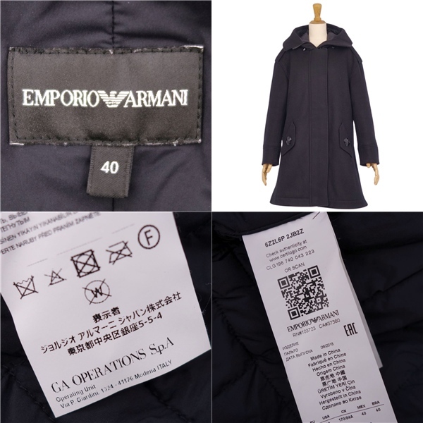 | 美品 エンポリオアルマーニ EMPORIO ARMANI コート フーデッドコート フード ミドル丈 アウター レディース 40(M相当) |