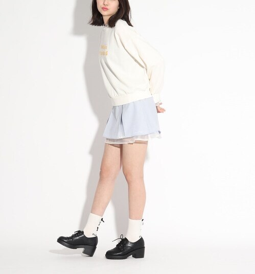 新品 PINK-latte ニコラ掲載シアーチュールドッキングトップス アイボリー 02(165cm) 定価2860円