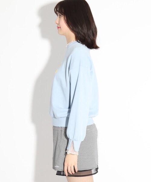 ネックと袖口から覗くフリルで女の子らしさをプラスしたフェミニンなプルオーバー。