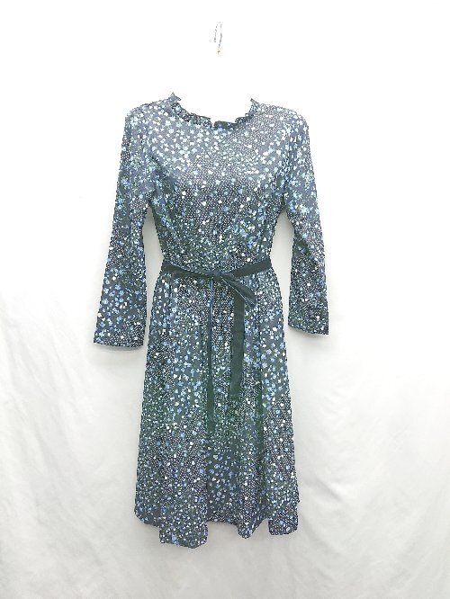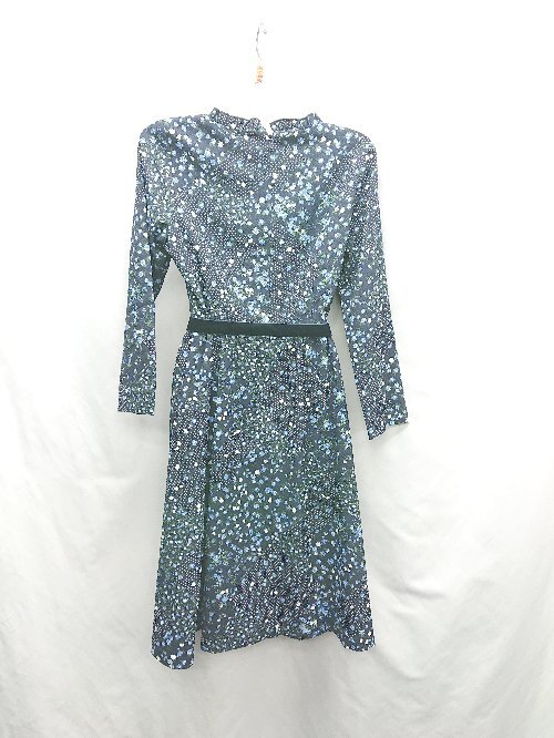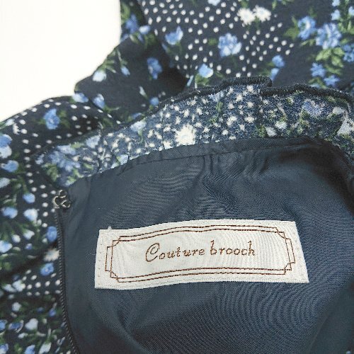 ◇ ⊂ ◎ Couture Brooch クチュールブローチ 総柄 長袖 ロング丈 ワンピース サイズ38 ネイビー ホワイト レディース E