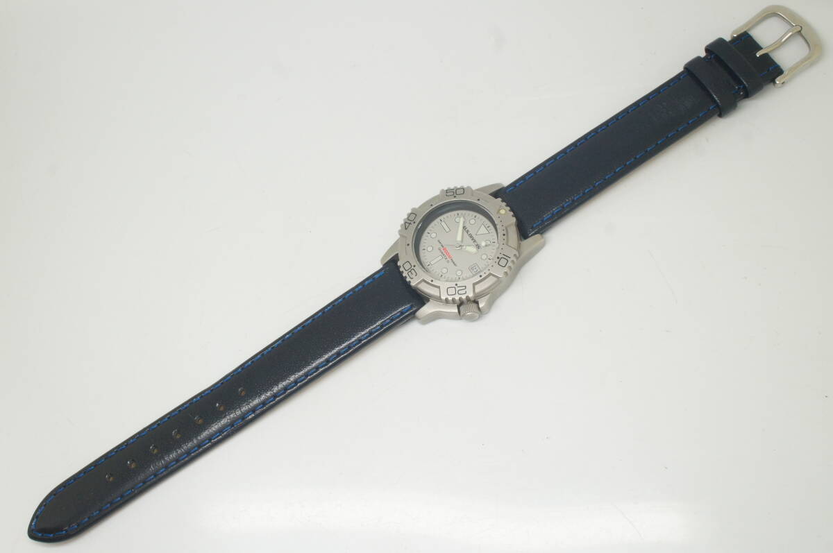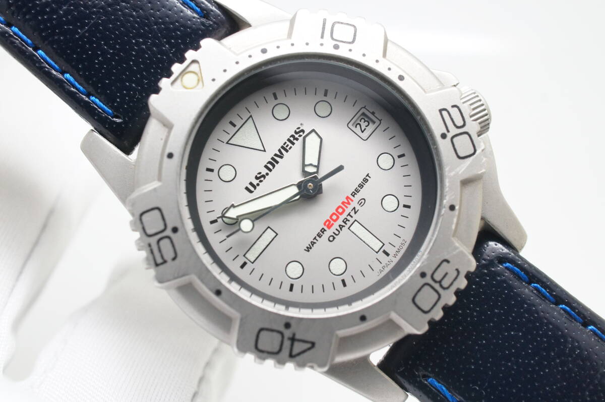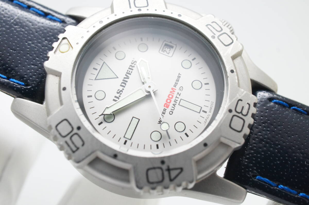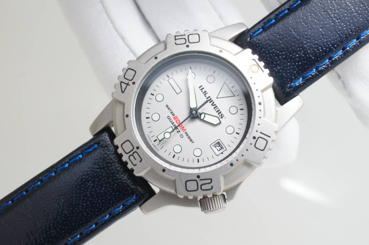 A151●作動良好 未使用ベルト U.S. DIVERS ユーエスダイバーズ 200M ネジ込み式竜頭 デイト レディース腕時計 シルバー クォーツ