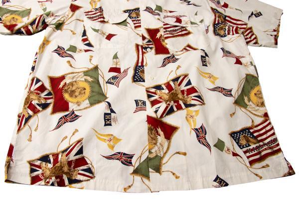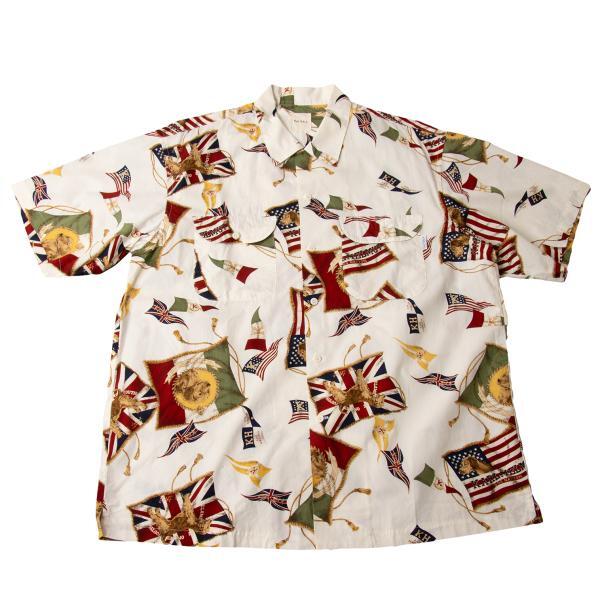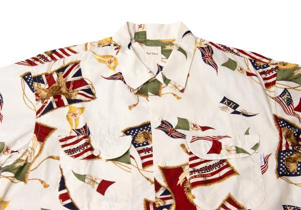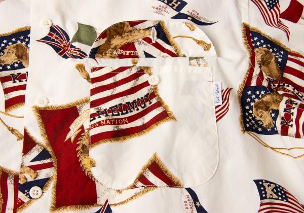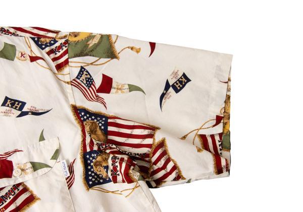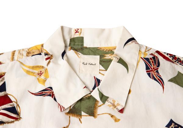 | カールヘルムKarl Helmut コットンドッグフラッグ総柄プリント半袖シャツ 白 白マルチM |