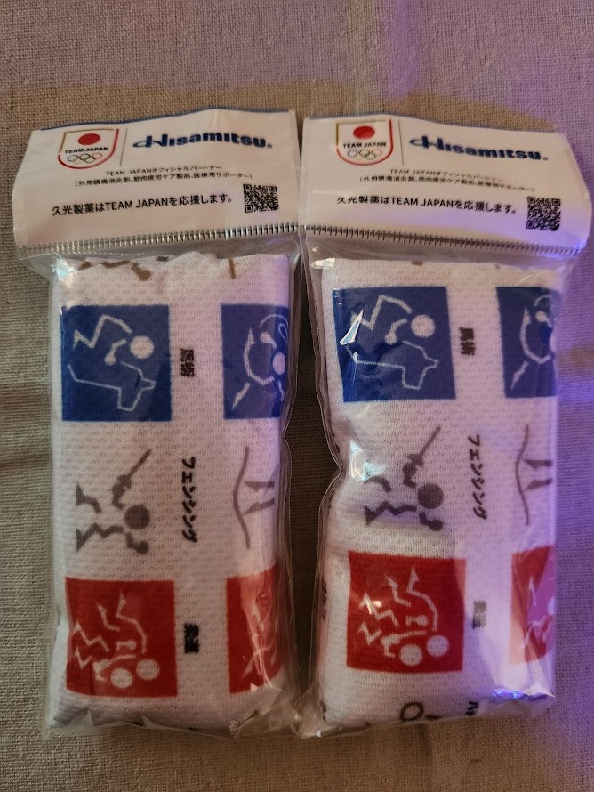 Hisamitsu 久光製薬 のノベルティグッズです。 クールタオル2個セット 濡らして絞るだけでひんやり オリンピックバージョン JOCコミュニケーションマーク入り 新品未開封のため、タオルの絵柄は分かりづらいですが画像2枚目をご参照ください。 パリ2024オリンピックの競技・種目をイメージしたアイコン柄になっています。 材質/ポリエステル サイズ/幅80×高さ20センチ 非売品 プレミアム レア | ||||||||