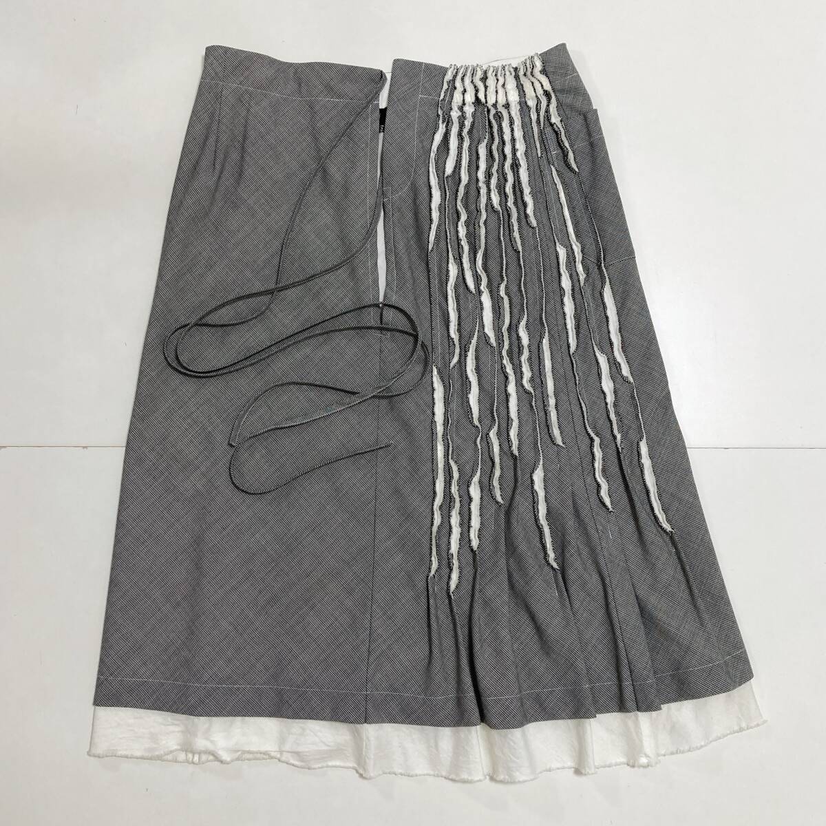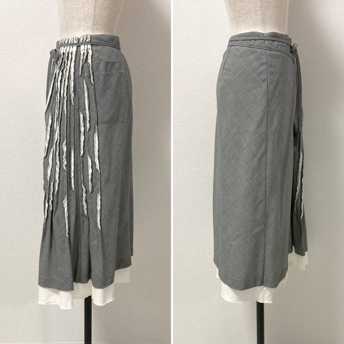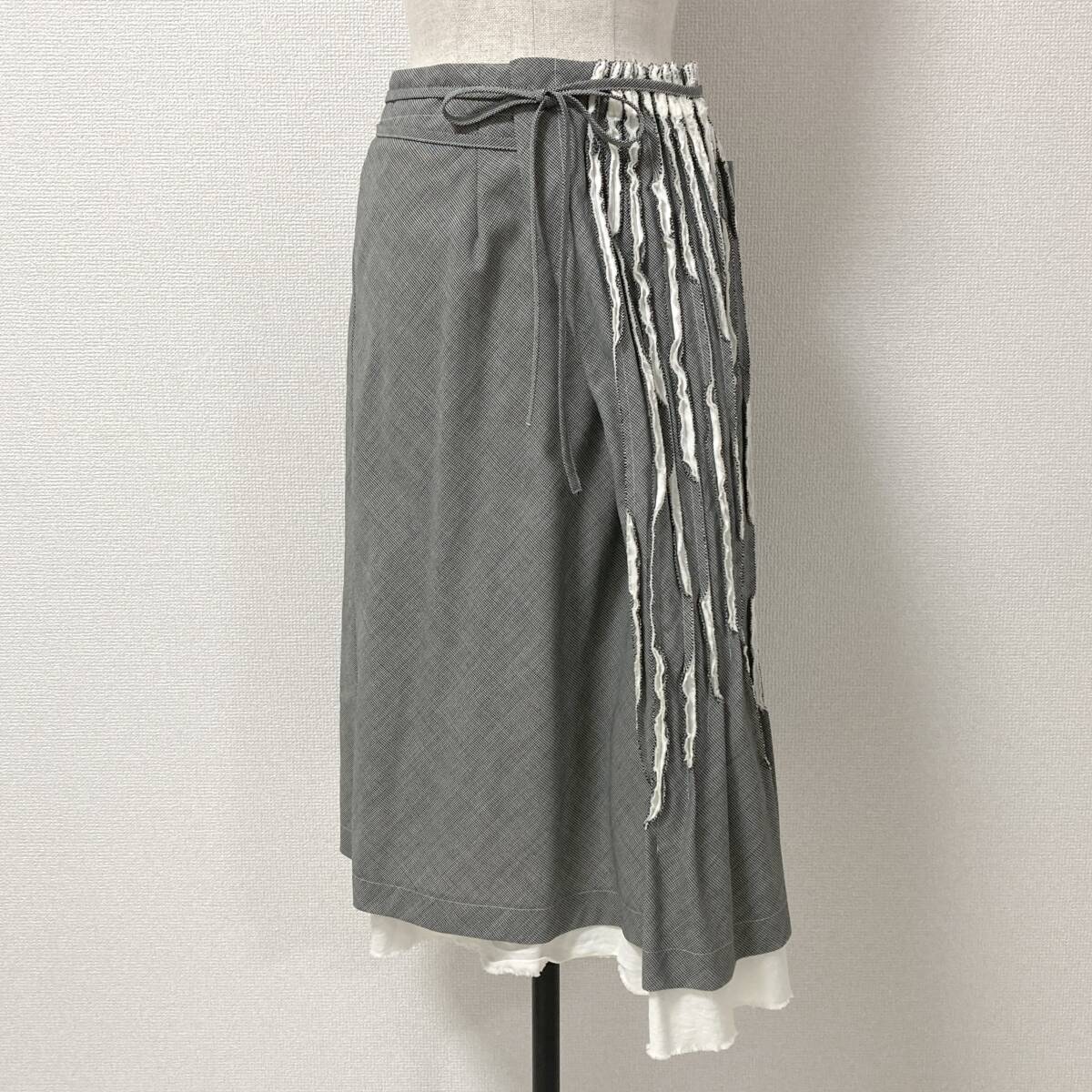 AD2000 tricot COMME des GARCONS 千鳥格子 スラッシュ加工 巻きスカート