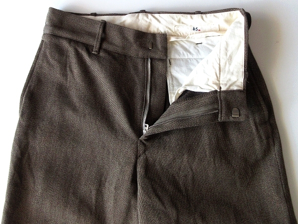 45rpmのパンツ。オリジナルの撚り杢カルゼ生地を使用しております。スタイルはワイドストレートのシャルロット。バックポケットのR刺繍がさりげないアクセントになります。上質な素材使いと綺麗なシルエットで、様々なコーディネートにお使い頂ける一本です。