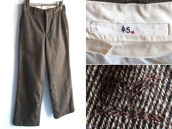 45rpm R刺繍 コットン 撚り杢カルゼ シャルロットパンツ ワイドパンツ 1 杢ブラウン 日本製 Umii908 Badou-R