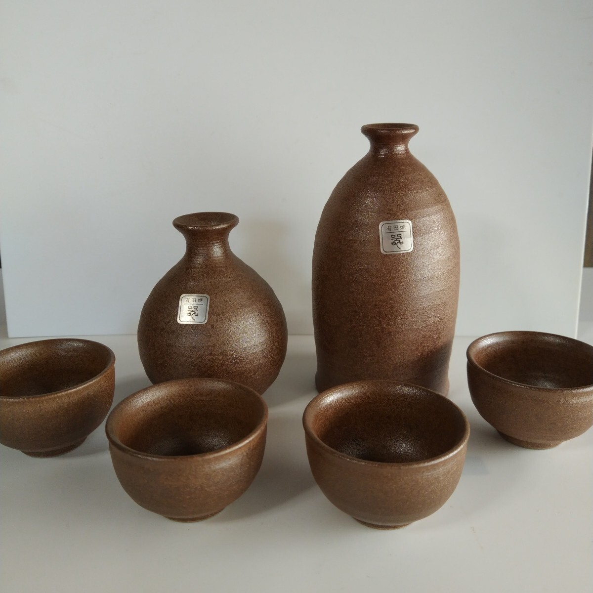 有田焼 徳利とぐい呑みのセット 大小の徳利とぐい呑みが4個のセットです。長期在庫のため専用の箱はありません。徳利の高さは14cmと10cm ぐい呑みの直径6cm高さ3cm