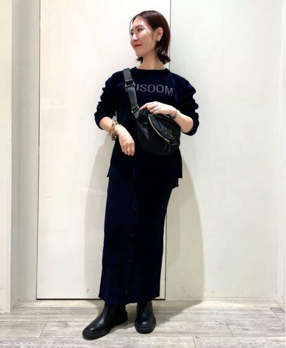 シックなカラーリングで、カジュアルの中に品の良さもある大人っぽいロゴニットです。