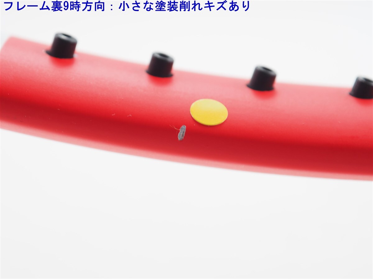 フレーム両面それぞれに小さな細かい表面塗装削れのキズが1箇所ずつあり、それ以外もかなり細かいキズが何箇所かありますがそこまでは気にならない程度で全体のラケットの状態としては良いラケットになります。