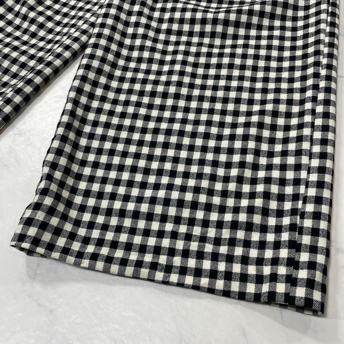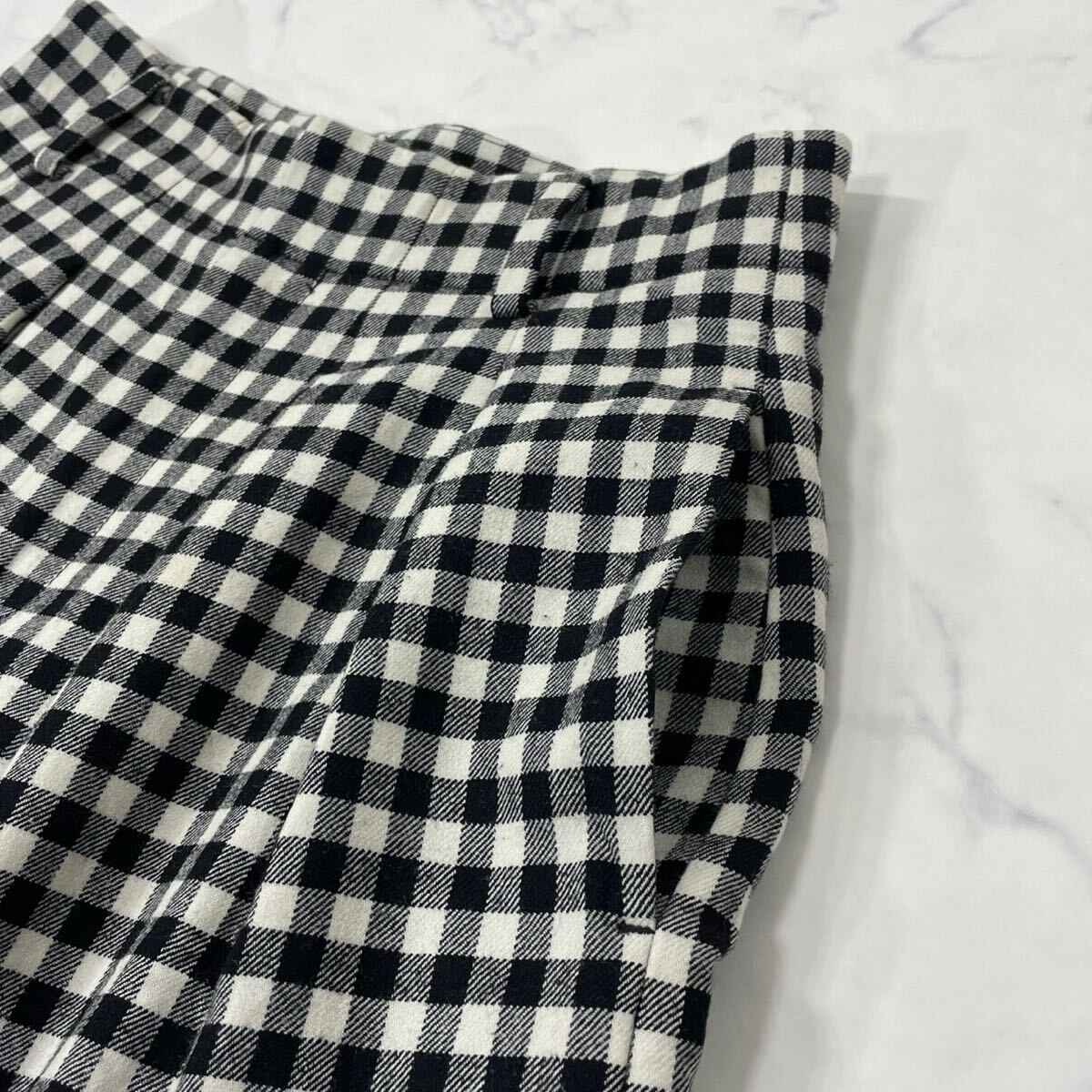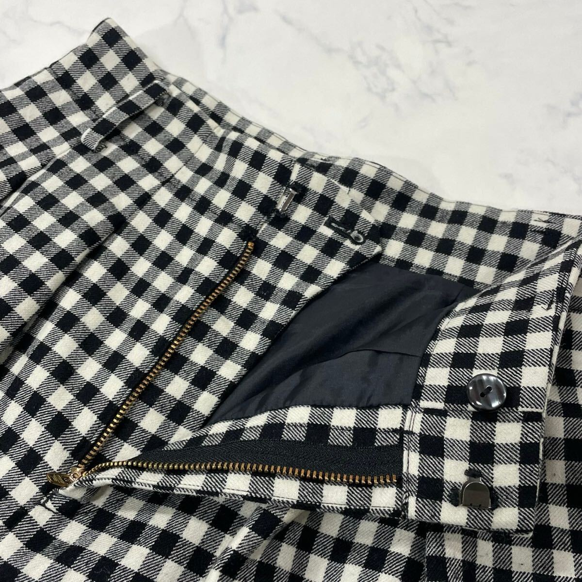 日本製 チェック ジッパーフライ 裏地付き ダーツ タック ポケット ボタン ウール混 ワイド パンツ