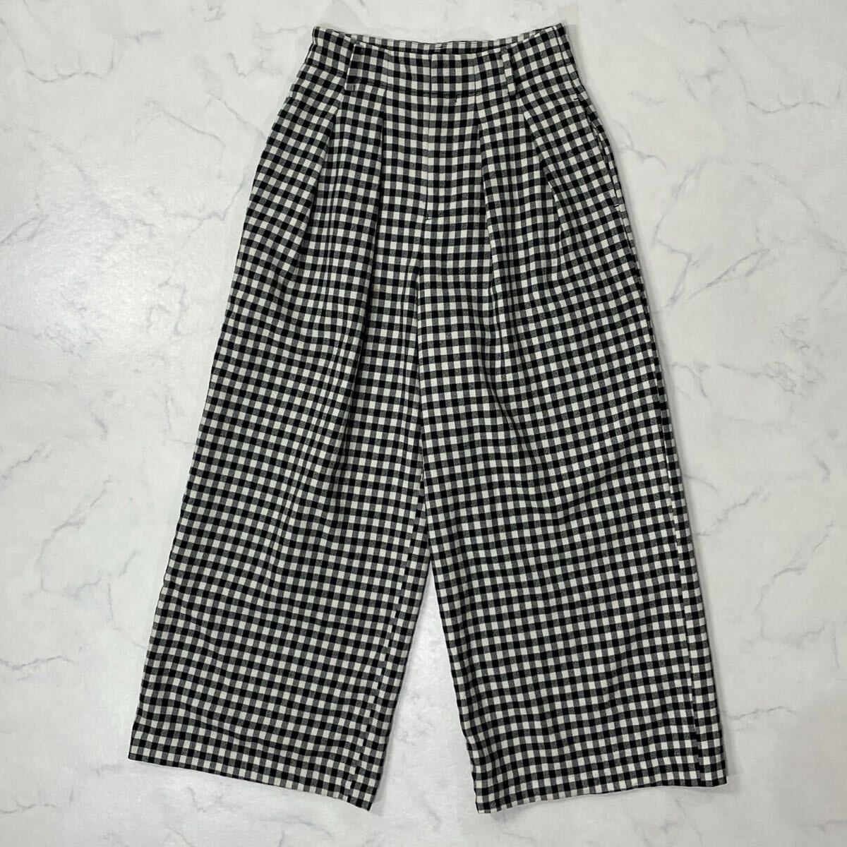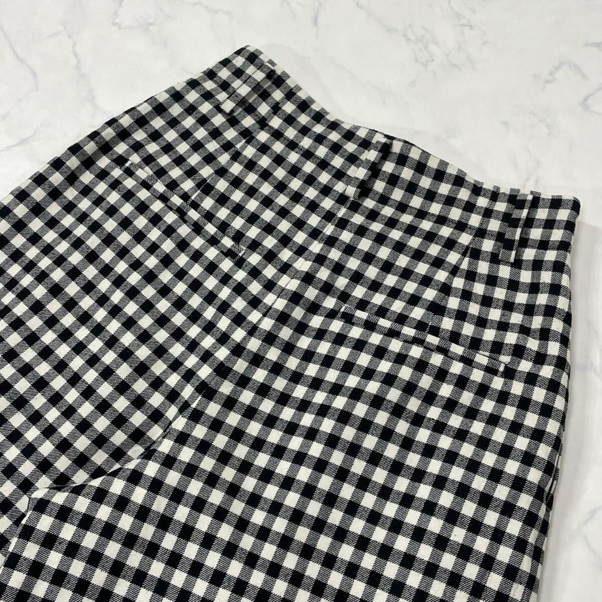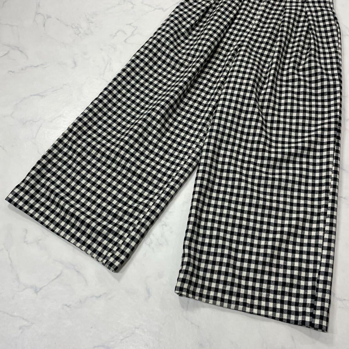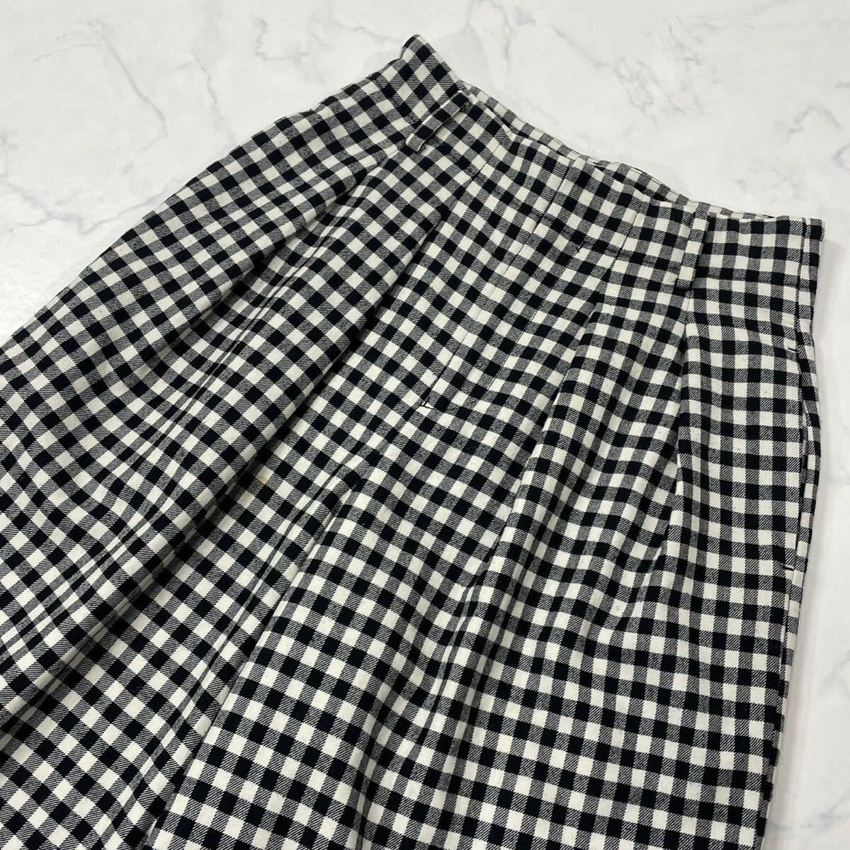 日本製 チェック ジッパーフライ 裏地付き ダーツ タック ポケット ボタン ウール混 ワイド パンツ