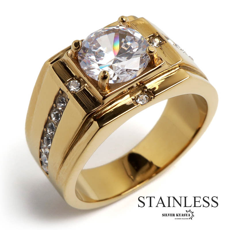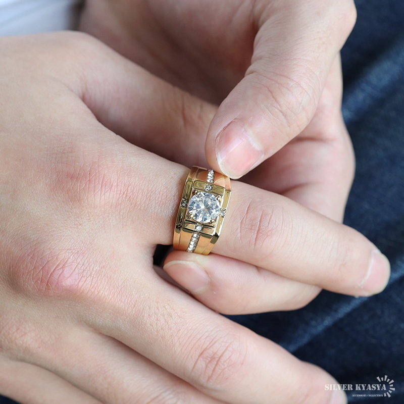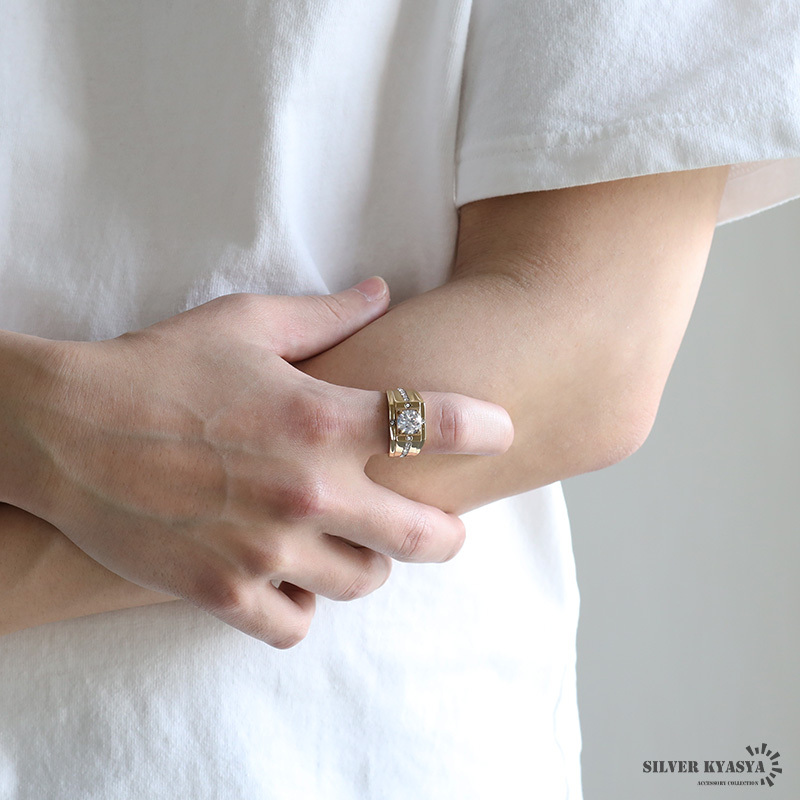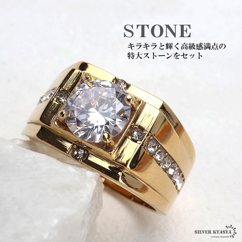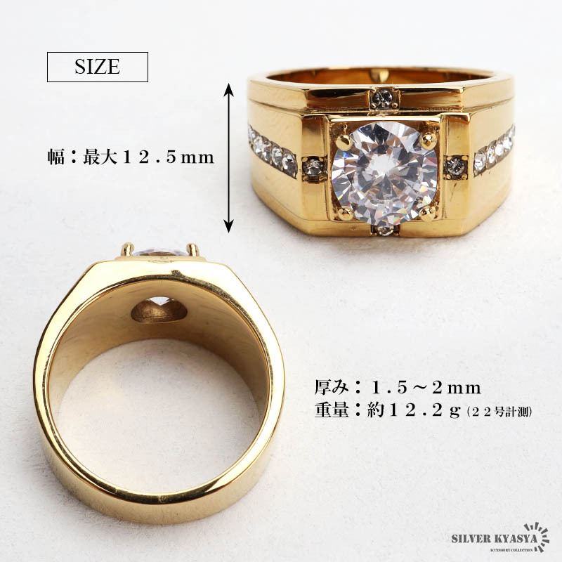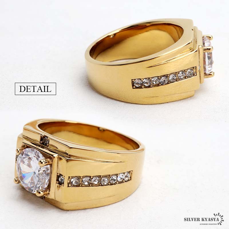 | 商品概要 | ■HIPHOPスタイル 高級感のあるゴールドとジルコニアの印台リング。しっかりとした存在感と重厚感のある仕上がり。18KGP加工、耐久性の高いステンレス素材。 ■ステンレス素材を使用 金属部分は頑丈なことで知られるステンレス素材を採用。耐久性はもちろん耐水性も高く水場での着用も可能。金属アレルギーも出にくいとされている金属です。 |
