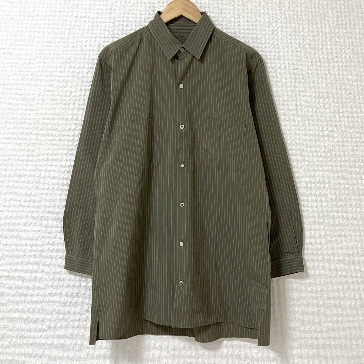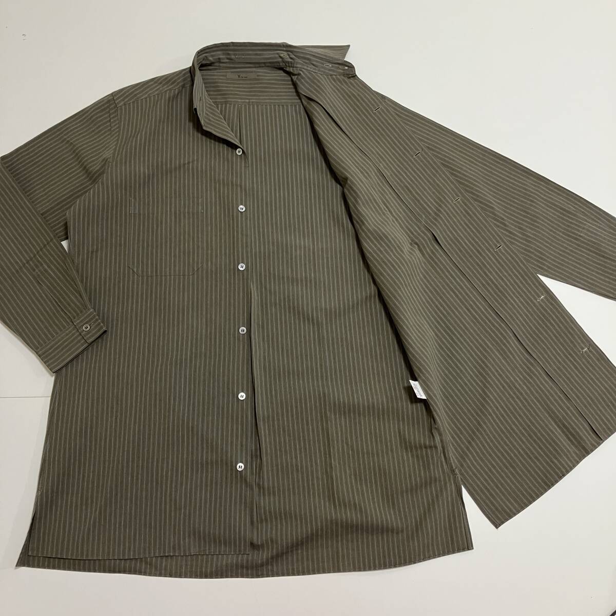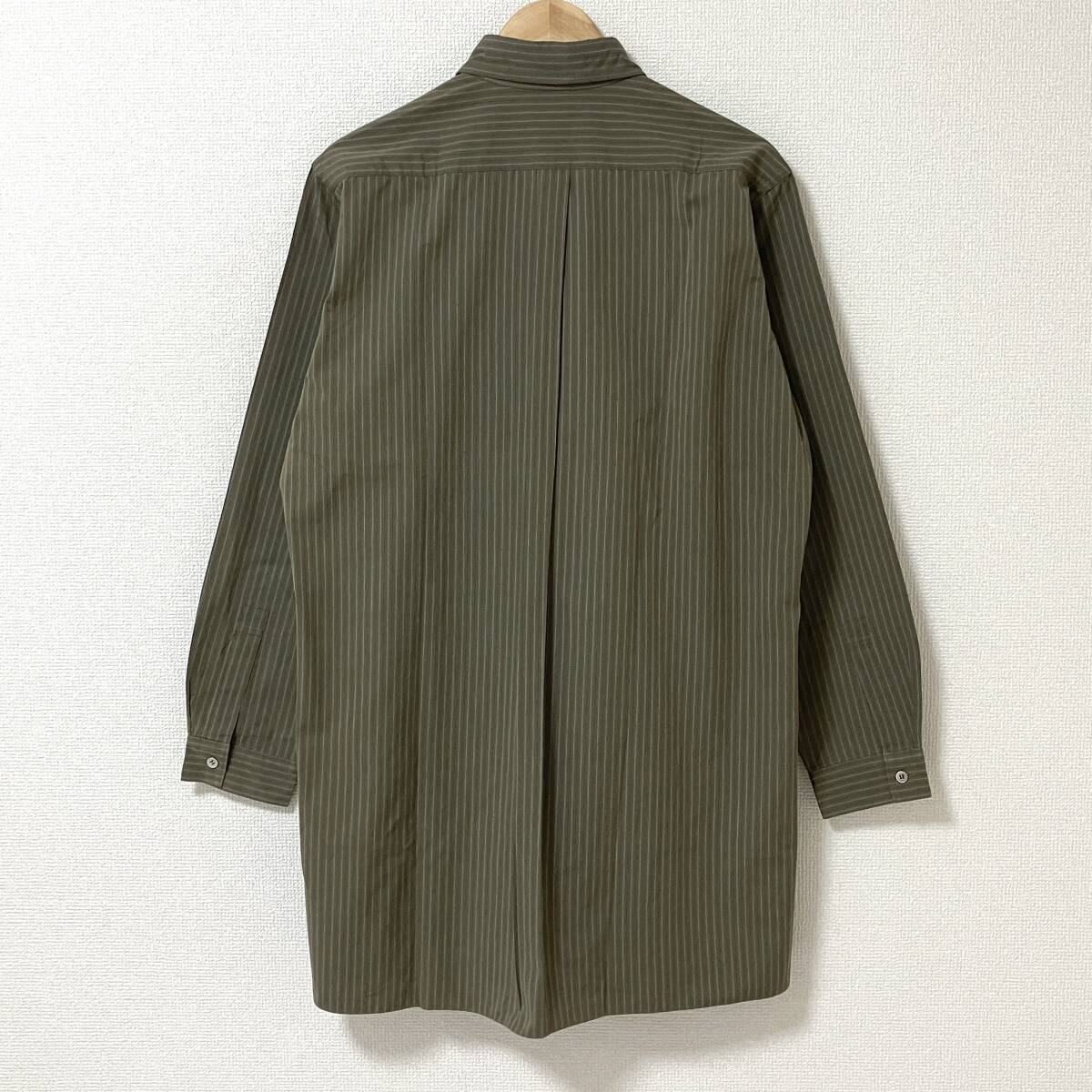 80s 90s Y's for men ストライプ ロング丈 長袖 シャツ オーバーサイズ カーキ