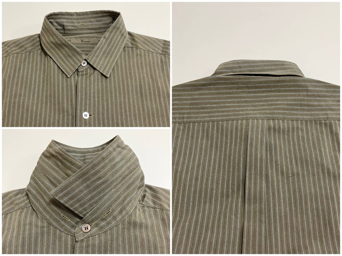 80s 90s Y's for men ストライプ ロング丈 長袖 シャツ オーバーサイズ カーキ ワイズフォーメン ヨウジヤマモト VINTAGE archive 4110243
