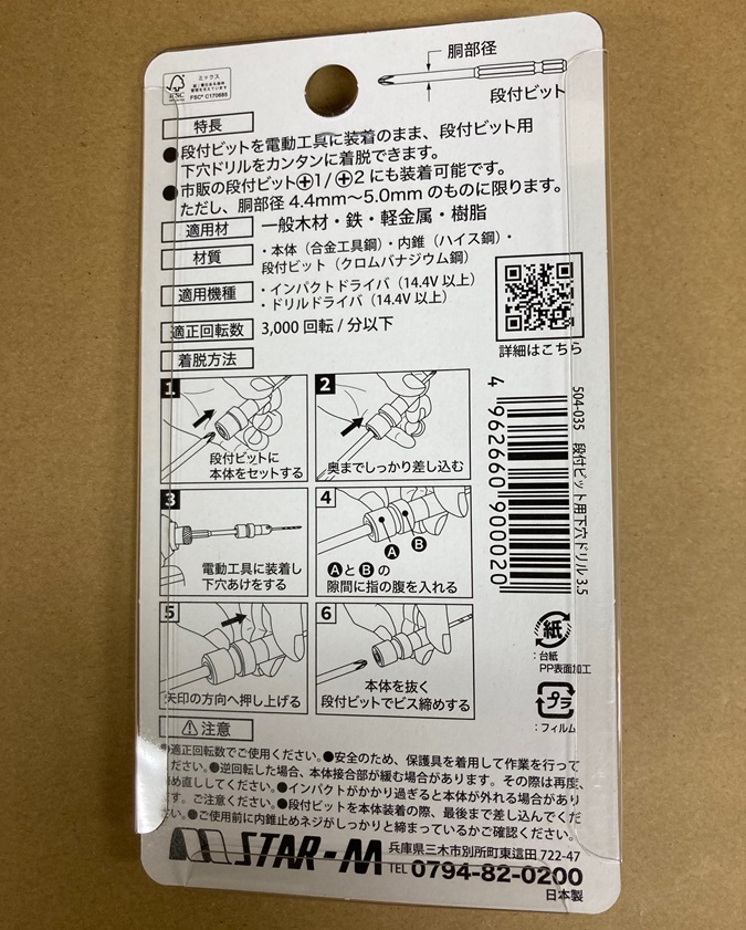 未使用 #2317■ スターエム 504-035 段付きビット用下穴ドリル3.5