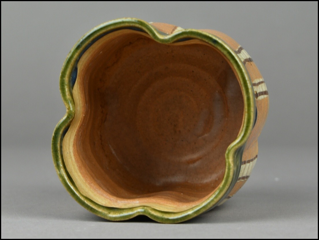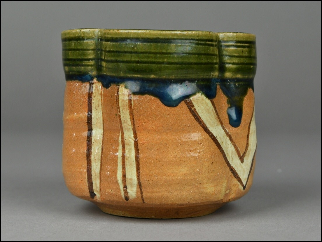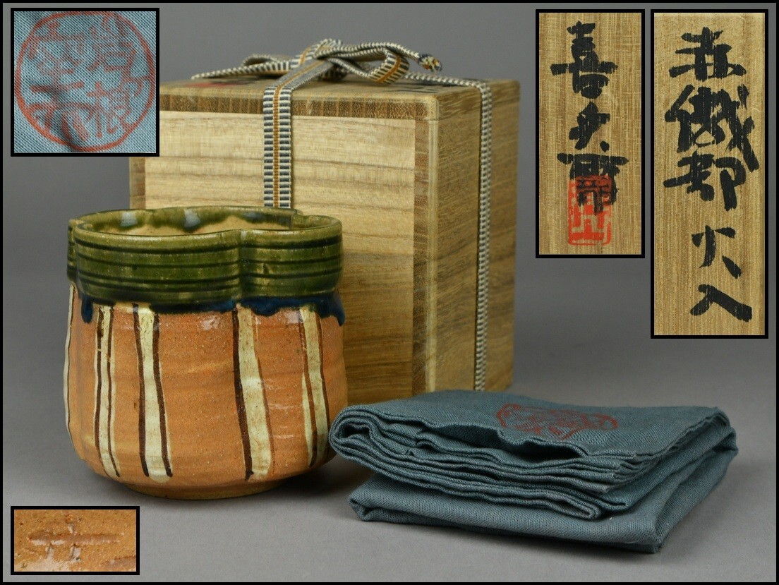 商品説明+++《品 名》:岩ヶ根窯【瀧口喜兵爾】赤織部 火入 共布 共箱 茶道具