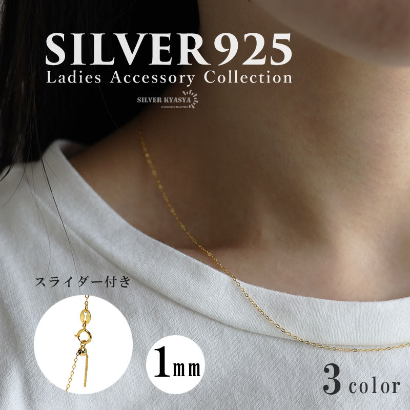 サイズ | チェーン幅:約1mm 全長:約46cm(スライダー付きのため無段階調整可能) |