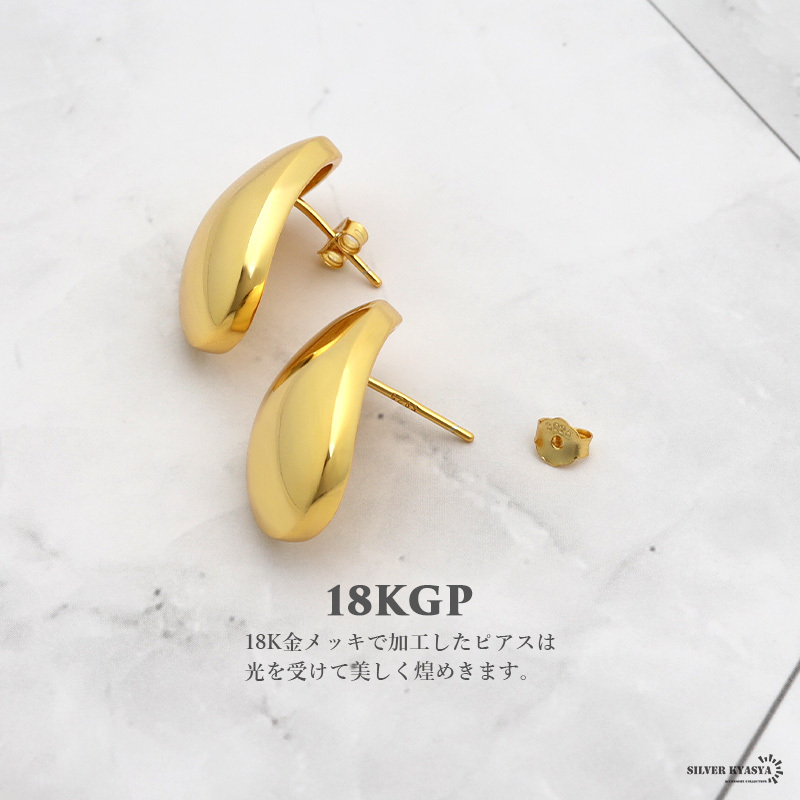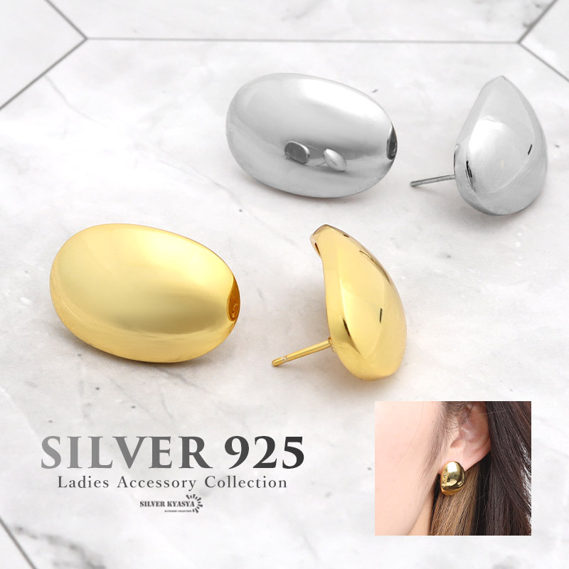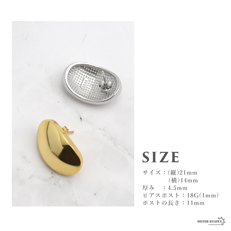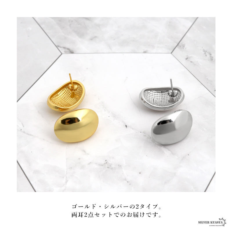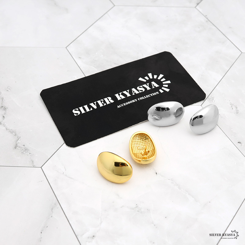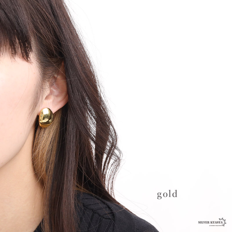 ■つるんとした楕円形がシンプルで美しいピアスです。ゴールド・シルバーの2タイプから選べます。