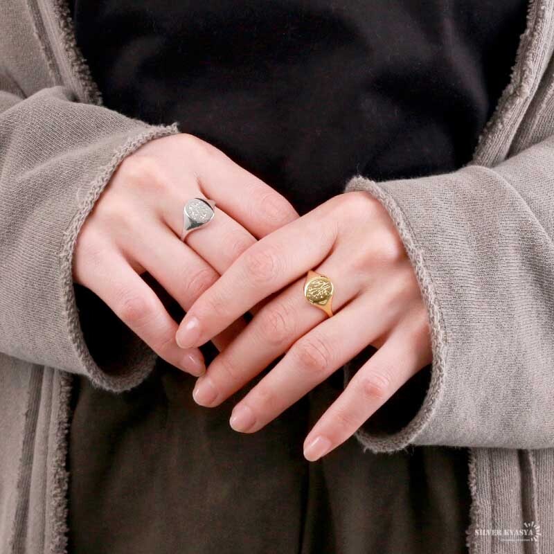 ■花束が彫られた印台リング