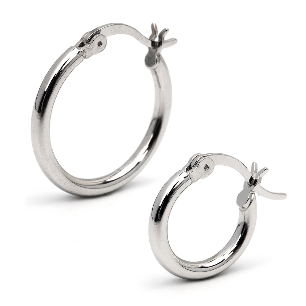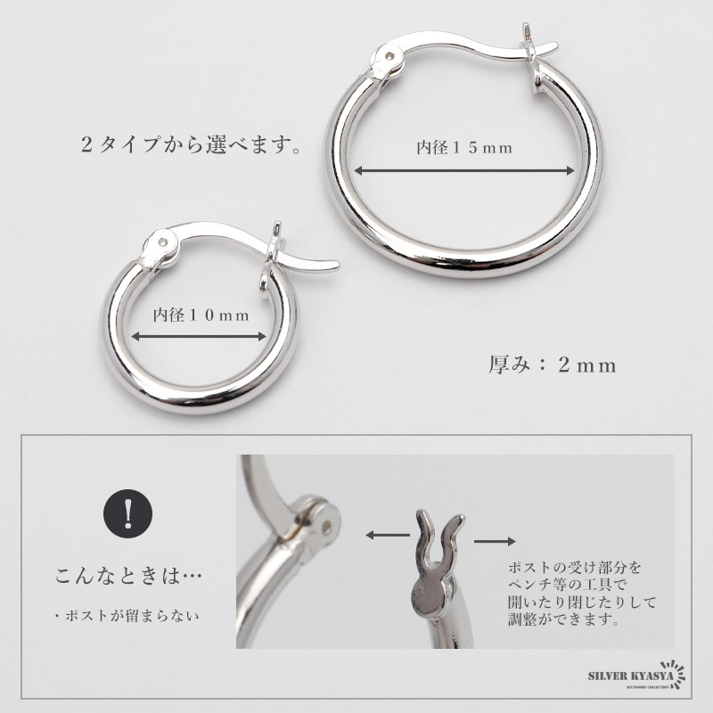 普段使いにおすすめなシンプルフープピアス。内径10mm/15mmの2サイズから選べます。
