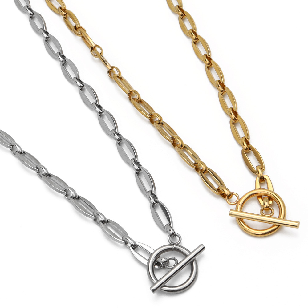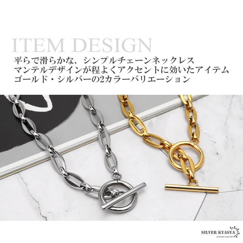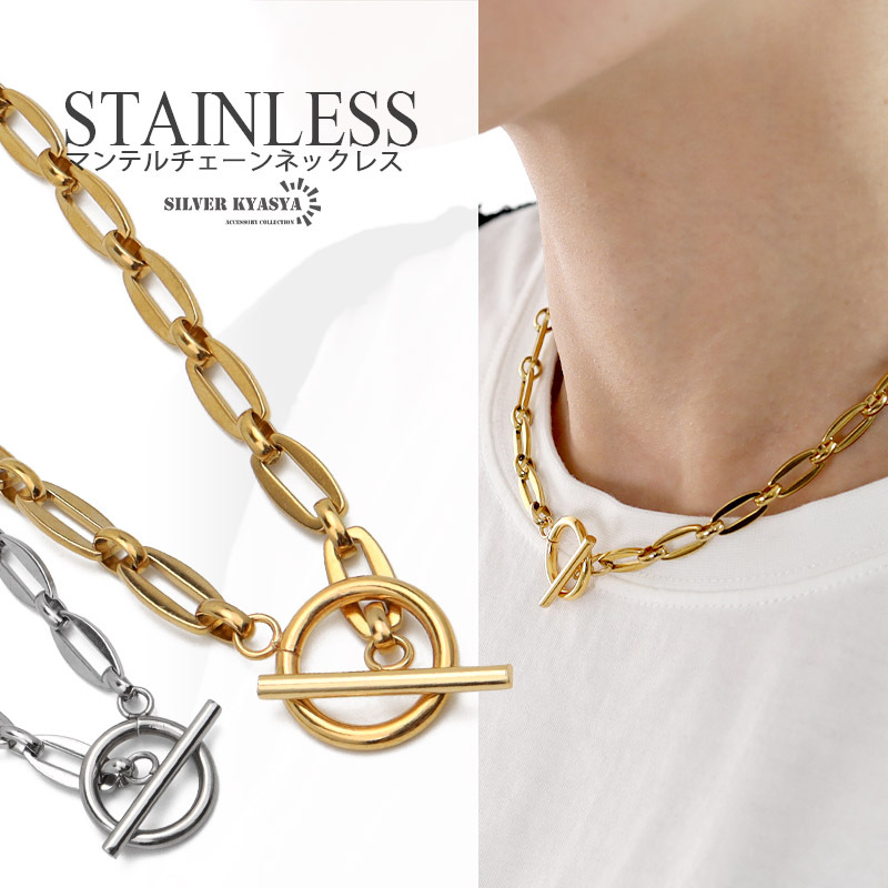 平らで滑らかなチェーンを使用したネックレス。マンテルデザインがアクセントに効いた、シンプルアイテム。短めな35cmタイプは、チョーカーとして使えます。