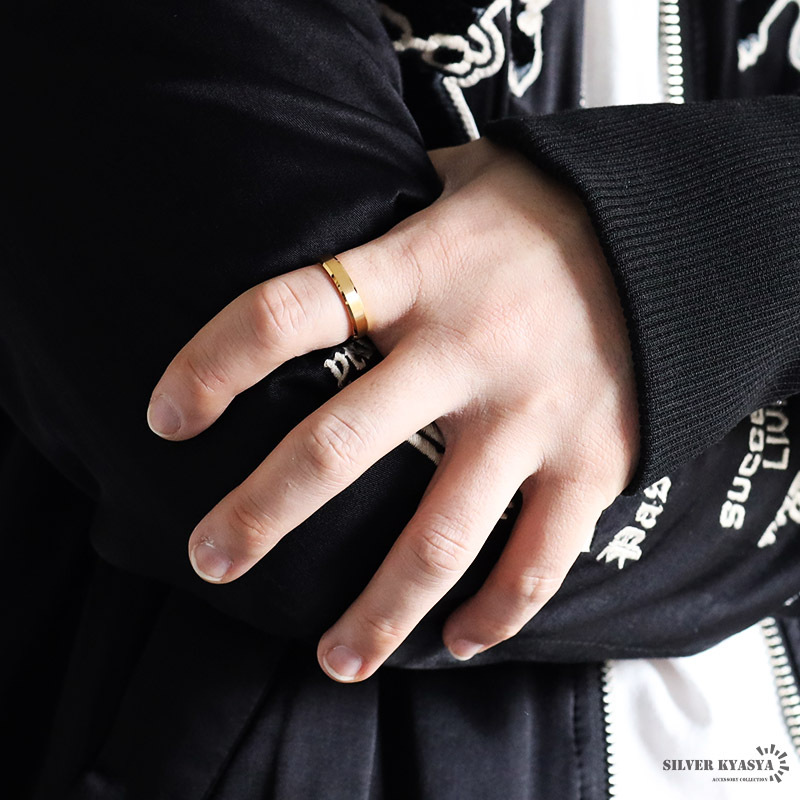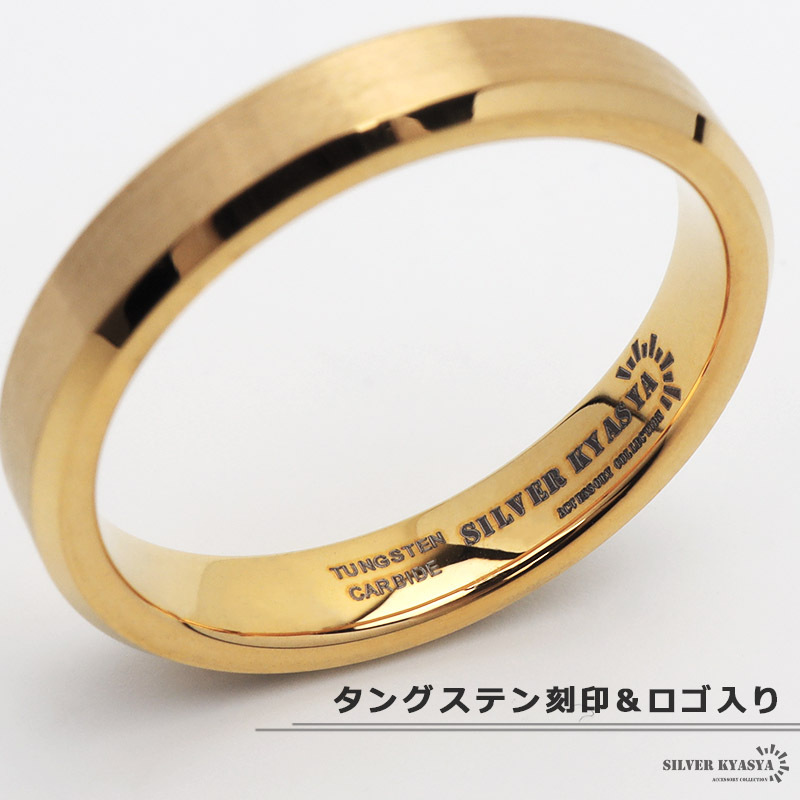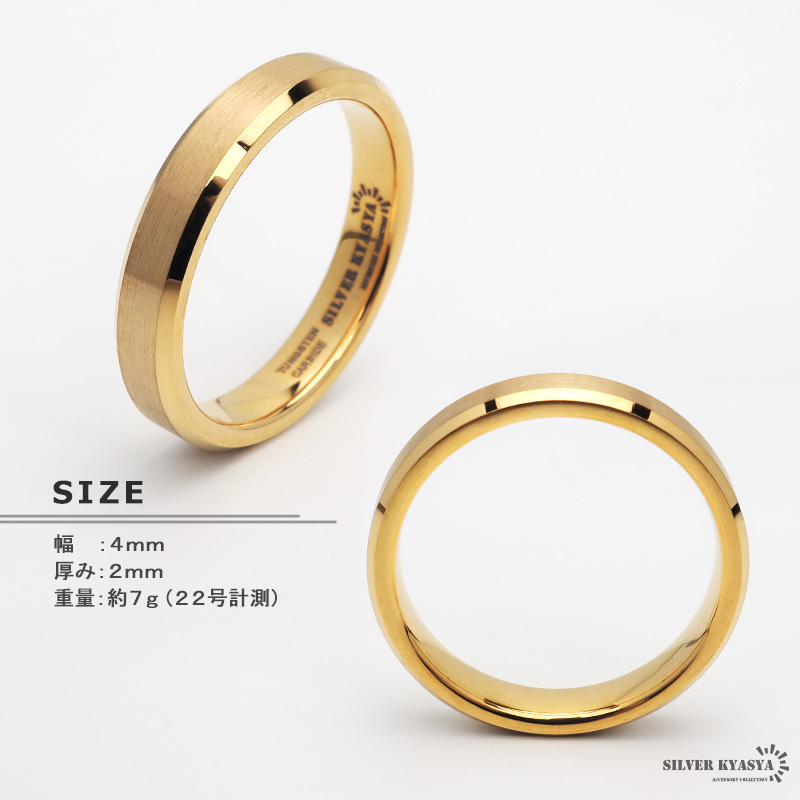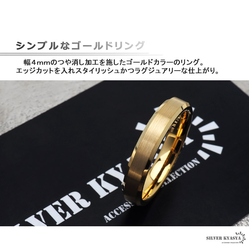 幅4mmのつや消し加工を施したゴールドカラーのリング。エッジカットを入れスタイリッシュかつラグジュアリーな仕上がり。