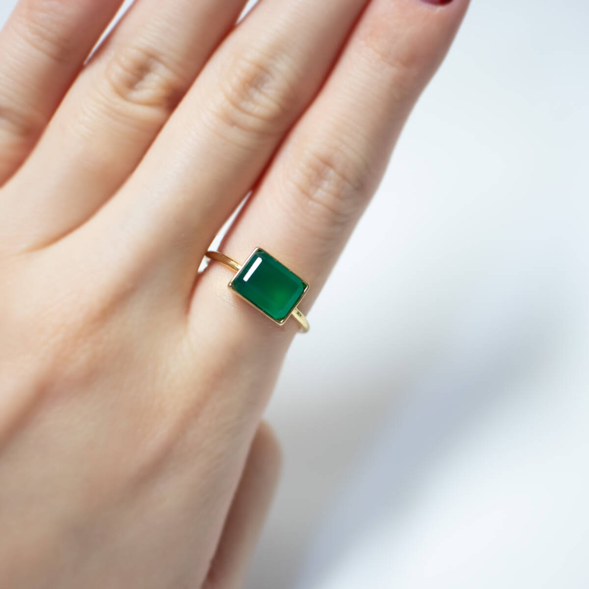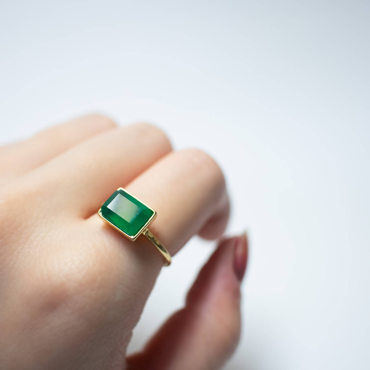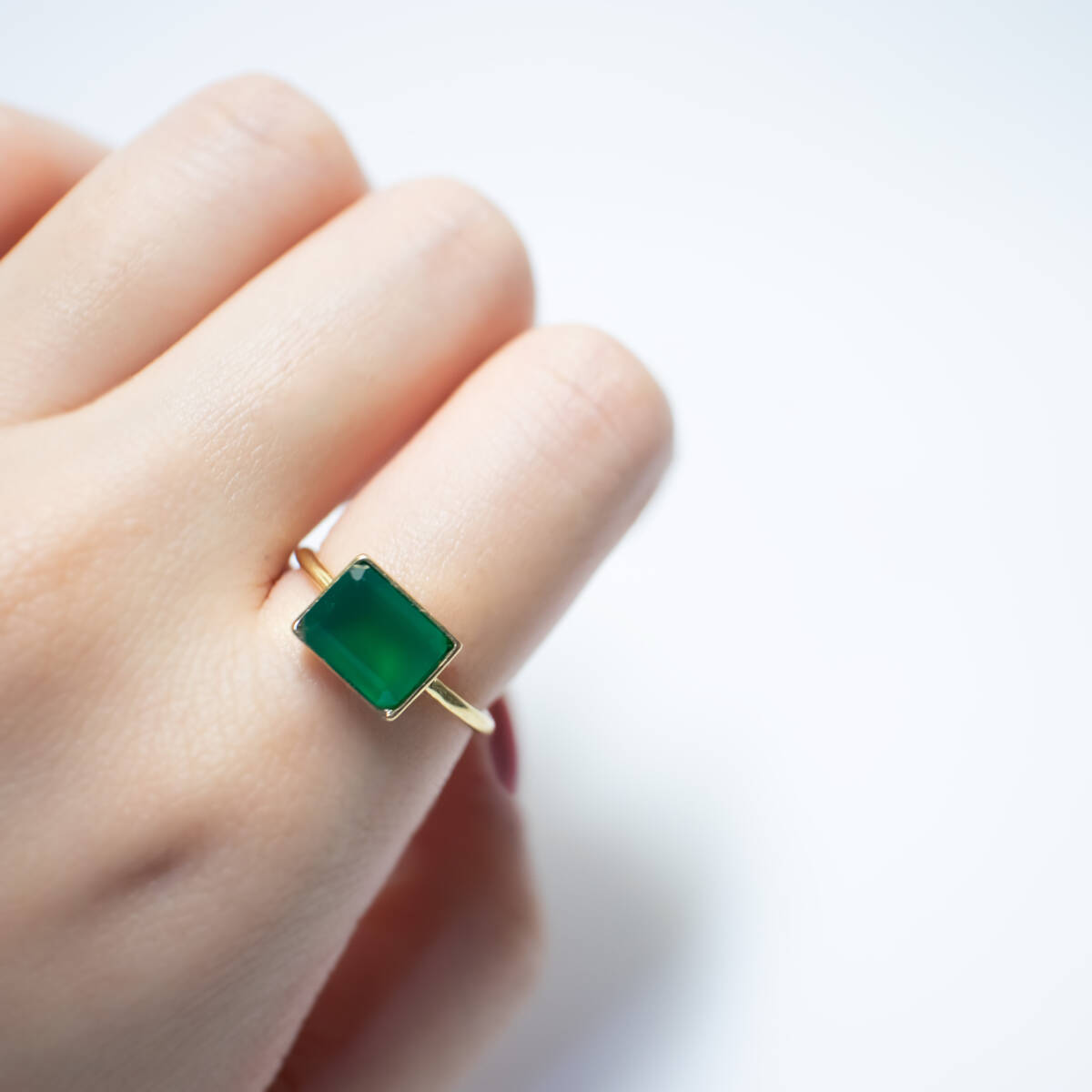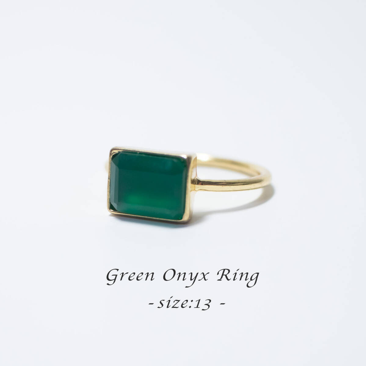 グリーンオニキス リング【13号】指輪◆ゴールド◆天然石◆レクタングル◆人気
