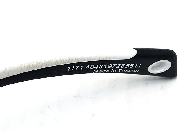 フレームの白い部分が全体的に少し日焼けしています。ツルの部分は塗装が少し劣化しています。