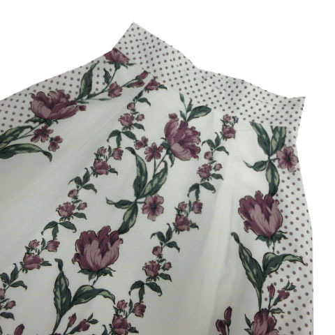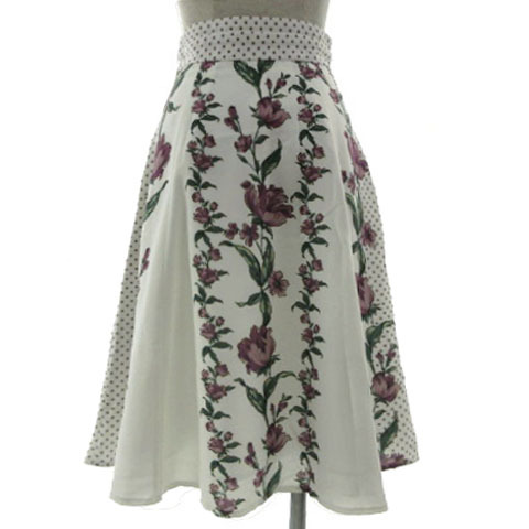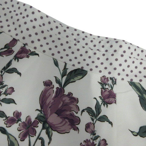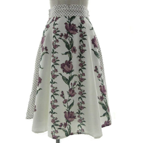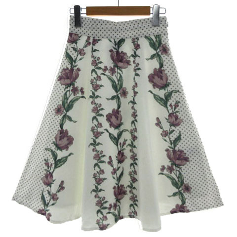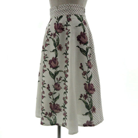 未使用品 ミッシュマッシュ MISCH MASCH スカート フレア ミディ丈 ドット 花柄 ホワイト 白 パープル系 紫系 グリーン 緑 S