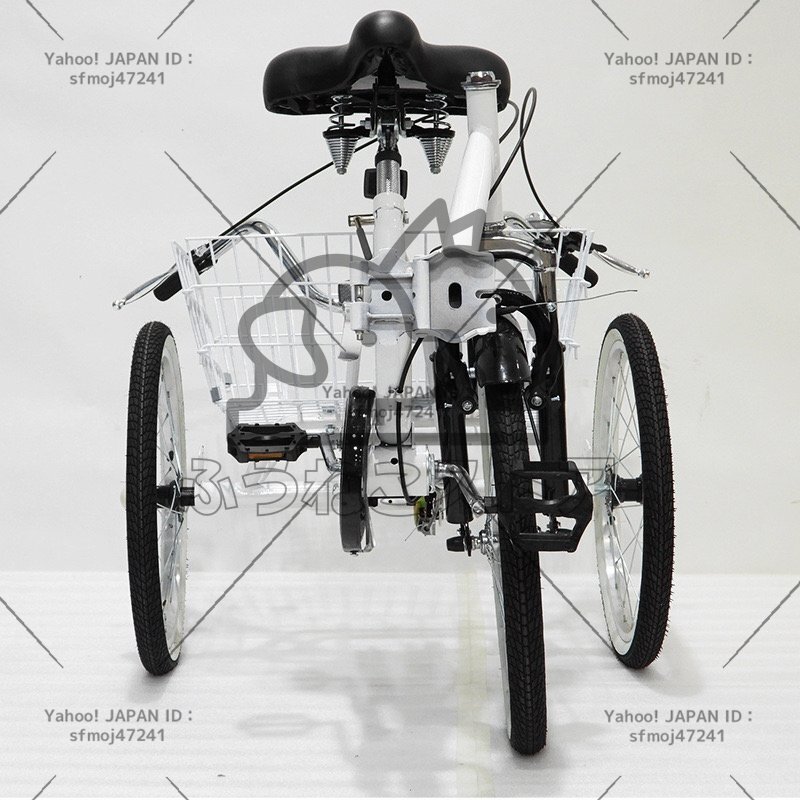 特売★品質保証 ホワイト 20インチ 折り畳み式 三輪自転車 人気新品 高齢者用 リ座席高さ調節可能 買い物かご付き 便利 大人用 3輪自転車