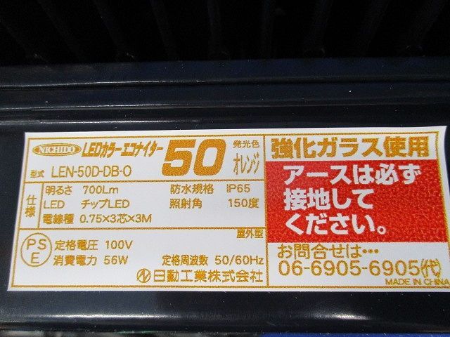 エコナイター50 LEDカラー投光器 発光色オレンジ(傷・汚れ有) 日動工業 LEN-50D-DB-O