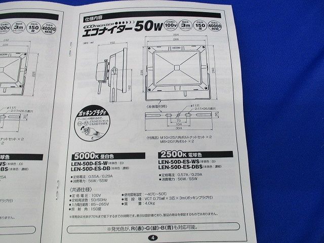 エコナイター50 LEDカラー投光器 発光色オレンジ(傷・汚れ有) LEN-50D-DB-O