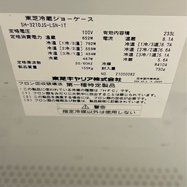 消費電力 | (冷蔵)467W (冷蔵3段+加温1段)434W (冷蔵2段+加温2段)559W (冷蔵1段+加温3段)792W (温蔵)652W |