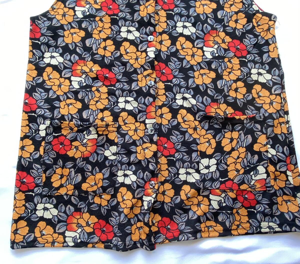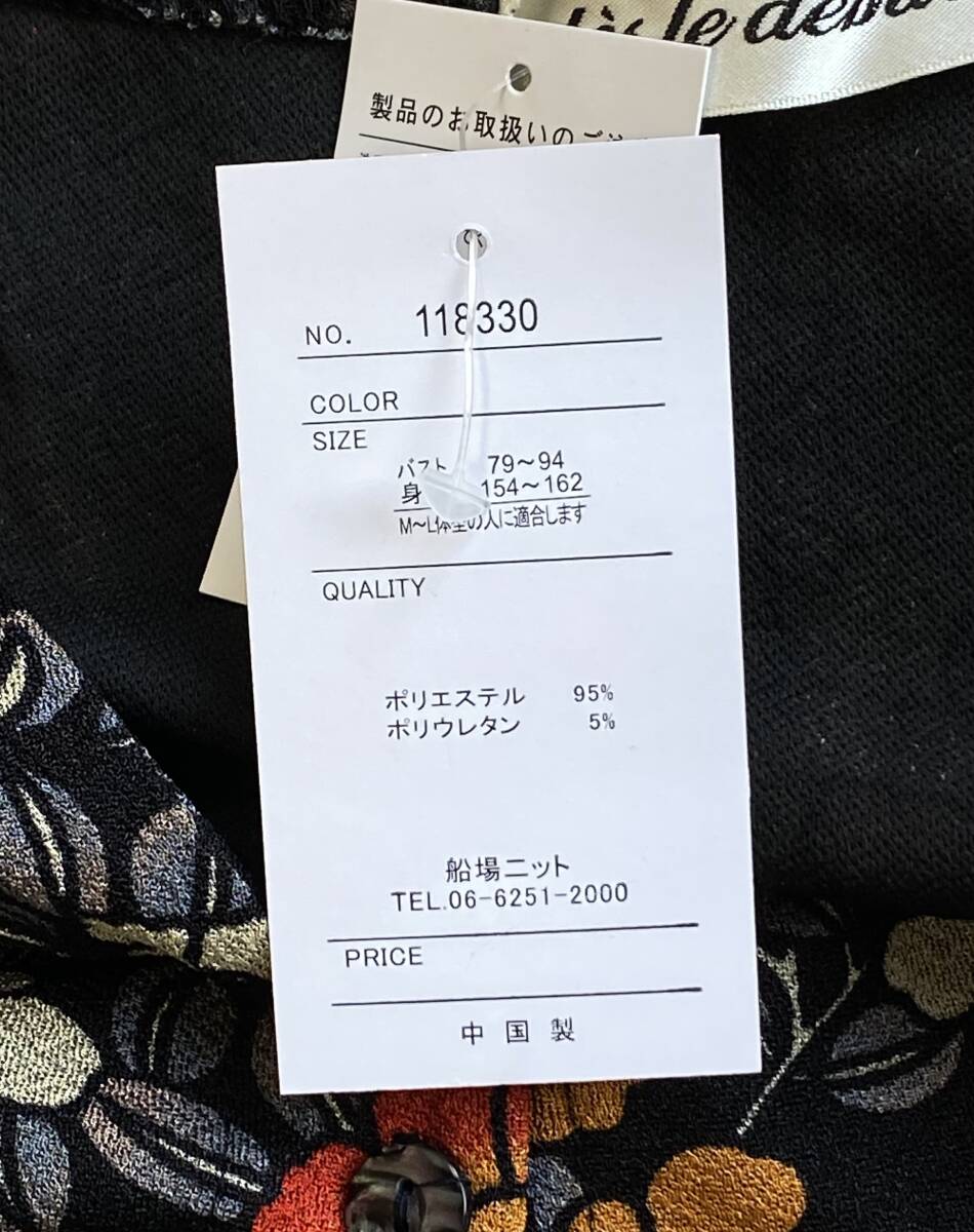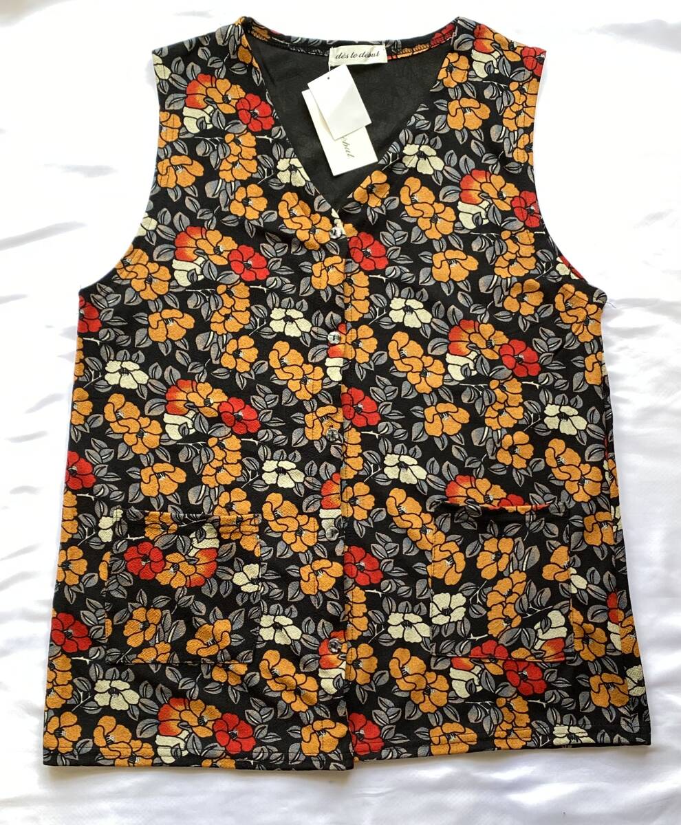 【新品】【送料込み】【レディースM~L】前開きニットベスト ブラック系花柄