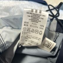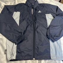 防水機能を備えたadidasのネイビーとグレーのウィンドブレーカー。