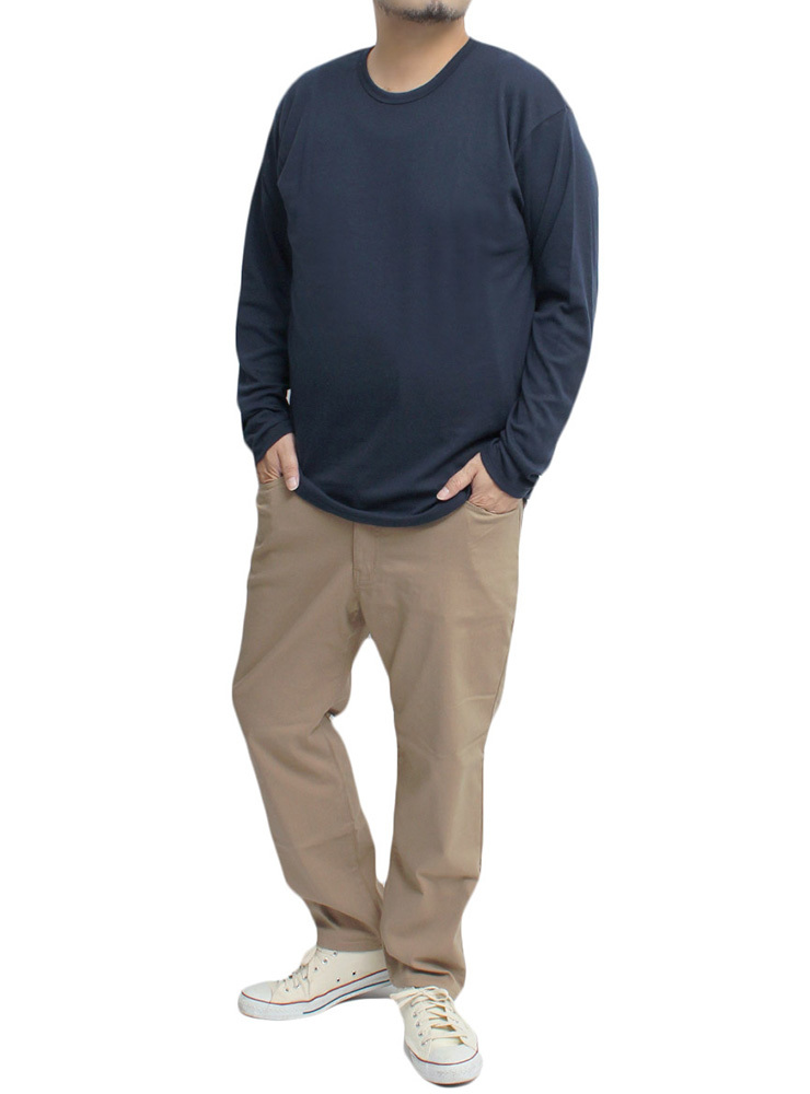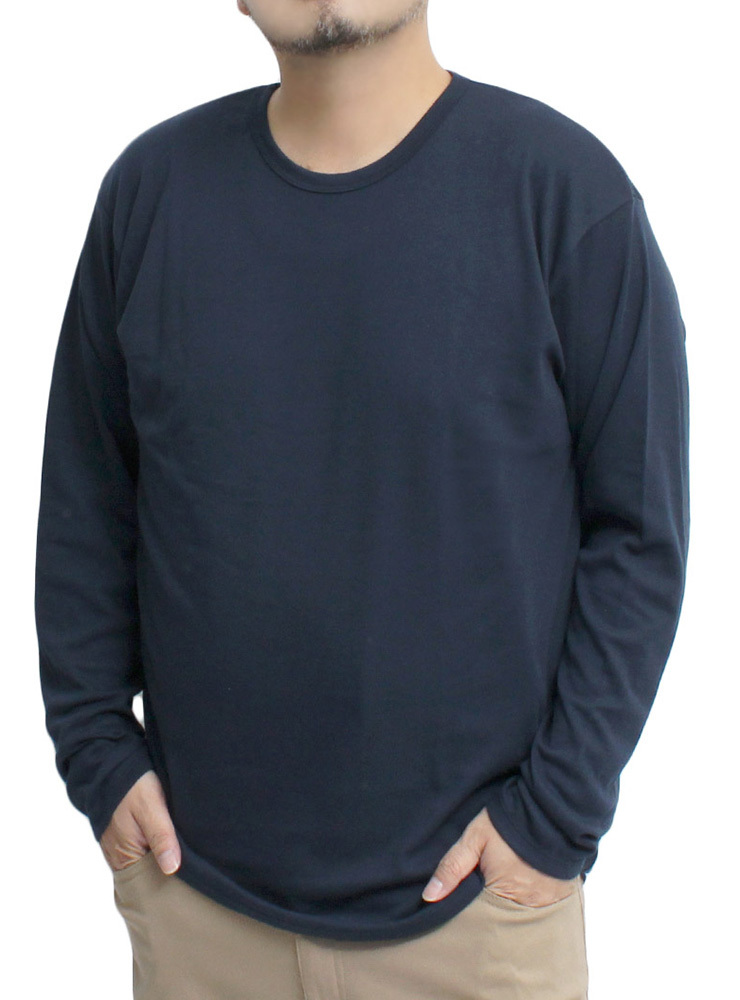商品名 | 【新品】 LL ネイビー 長袖Tシャツ メンズ 大きいサイズ 無地 ボーダー フライス クルーネック カットソー |