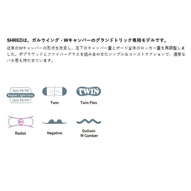 SHREDは、ガルウイング・Wキャンバーのグランドトリック専用モデルです。