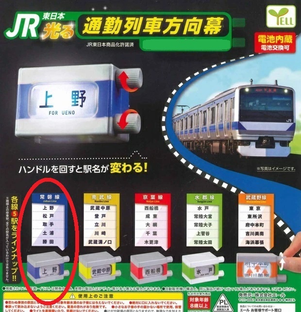 | <新品> エール JR東日本 光る通勤列車方向幕 常磐線(上野・松戸・取手・土浦・勝田) ※カプセル無し | ||||||||||||||||||||