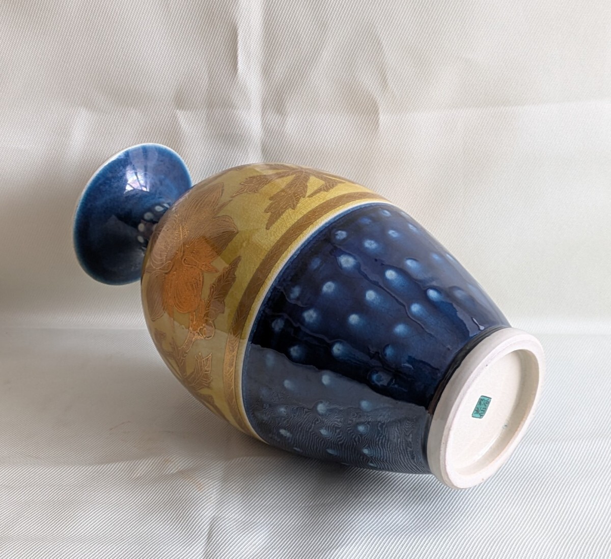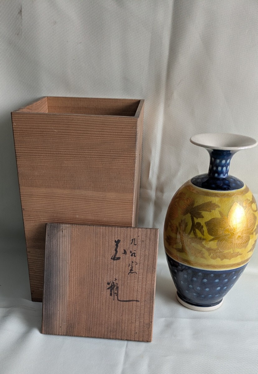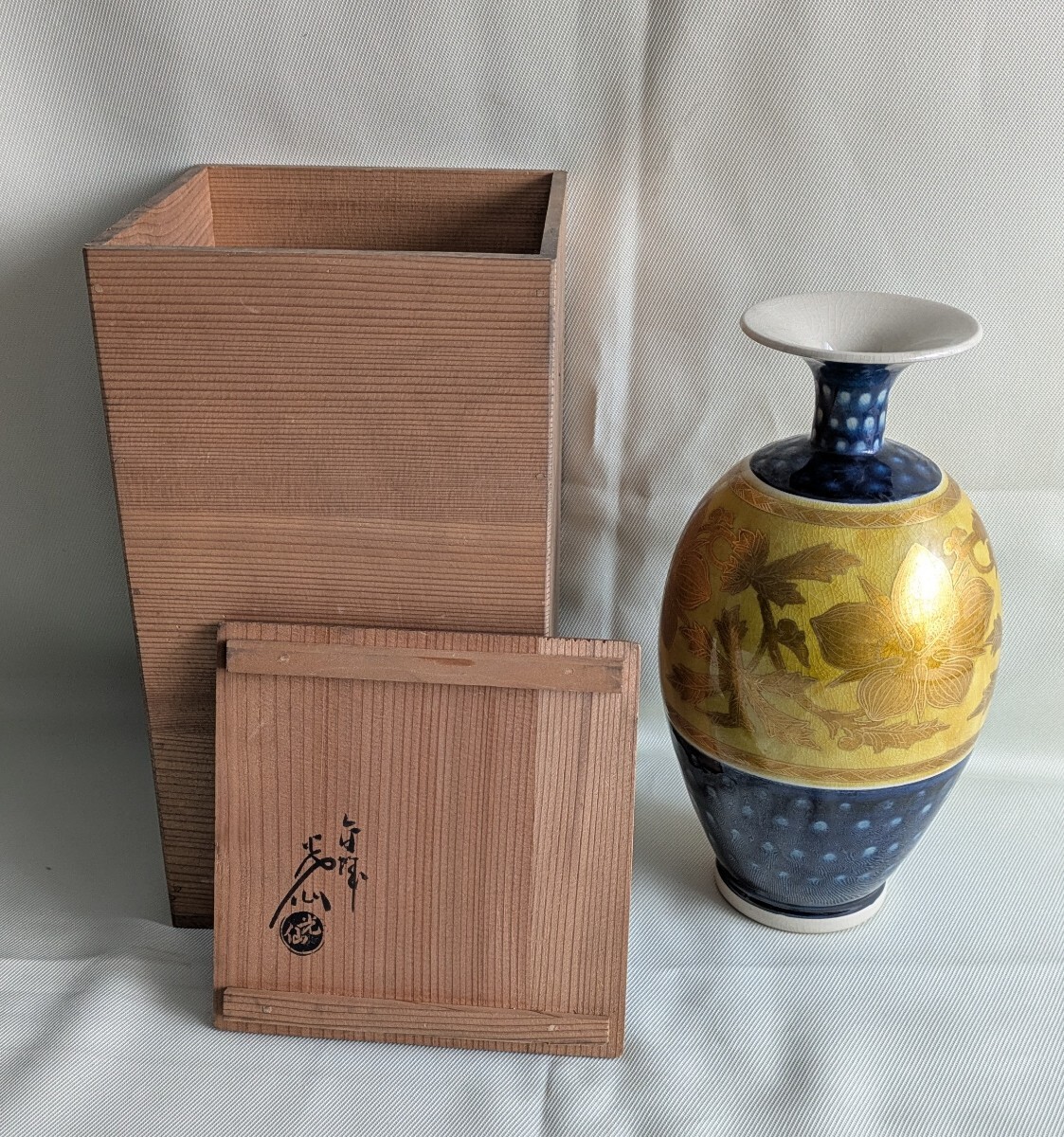 【真作保証】 九谷焼 利岡光仙 花瓶 置物 高さ25cm 共箱 木箱付 陶磁器