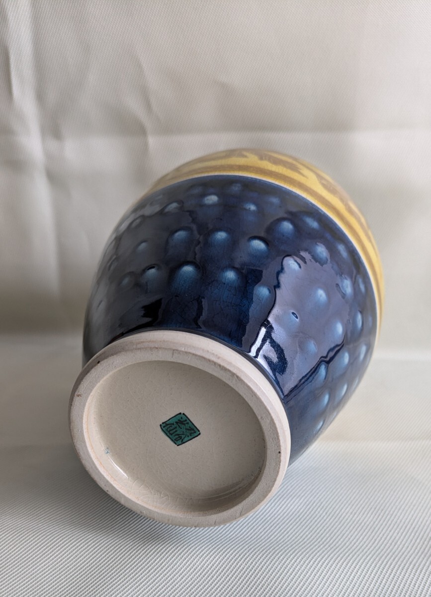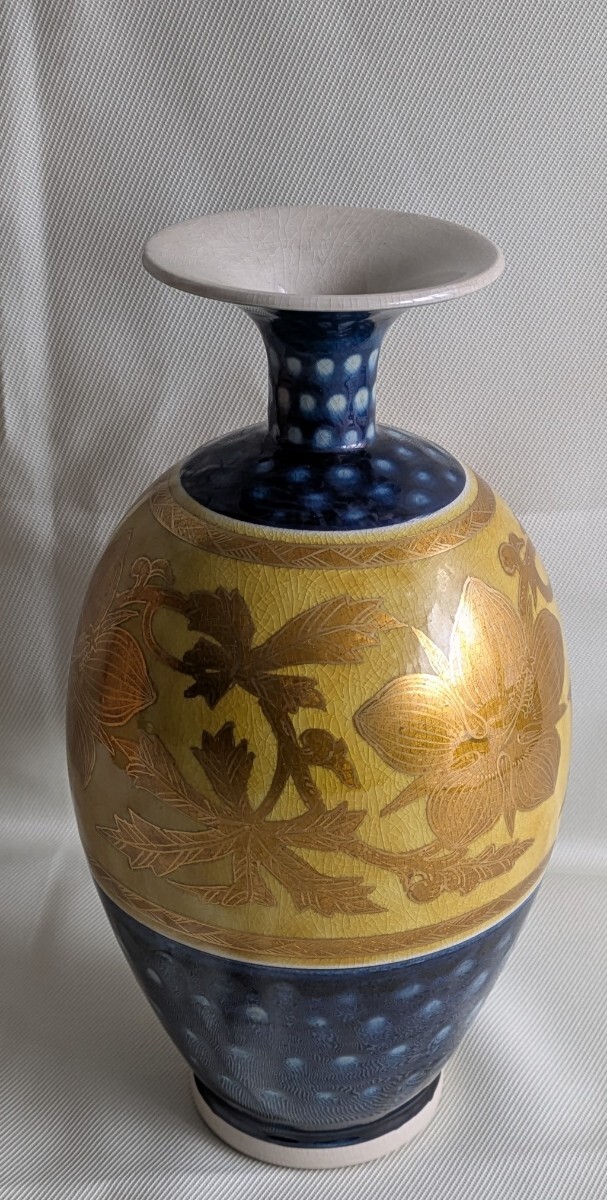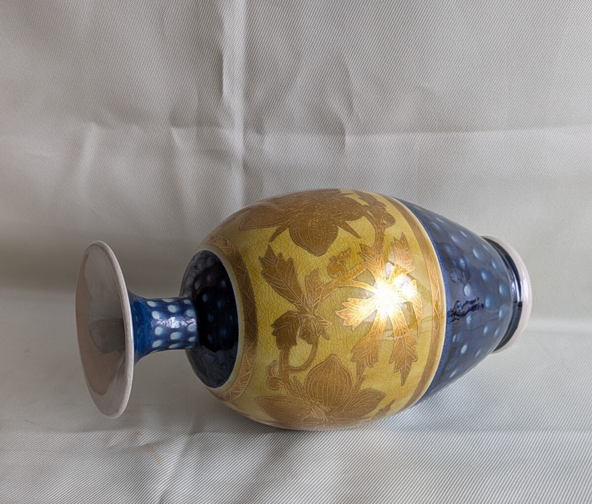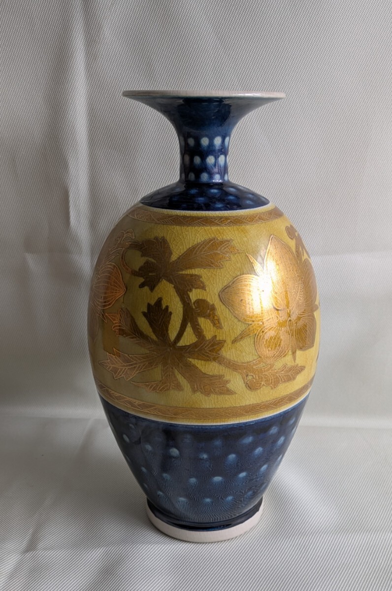 【真作保証】 九谷焼 利岡光仙 花瓶 置物 高さ25cm 共箱 木箱付 陶磁器
