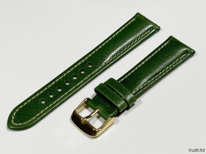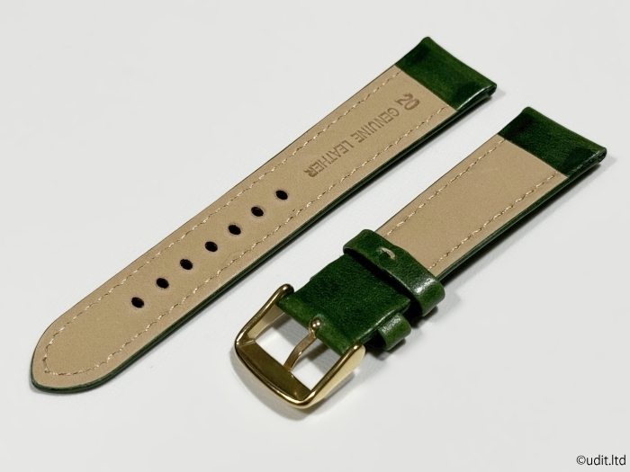 ラグ幅20mm コードバン 本革 腕時計用レザーベルト グリーン ゴールド尾錠 時計用バンド 腕時計ベルト LB101