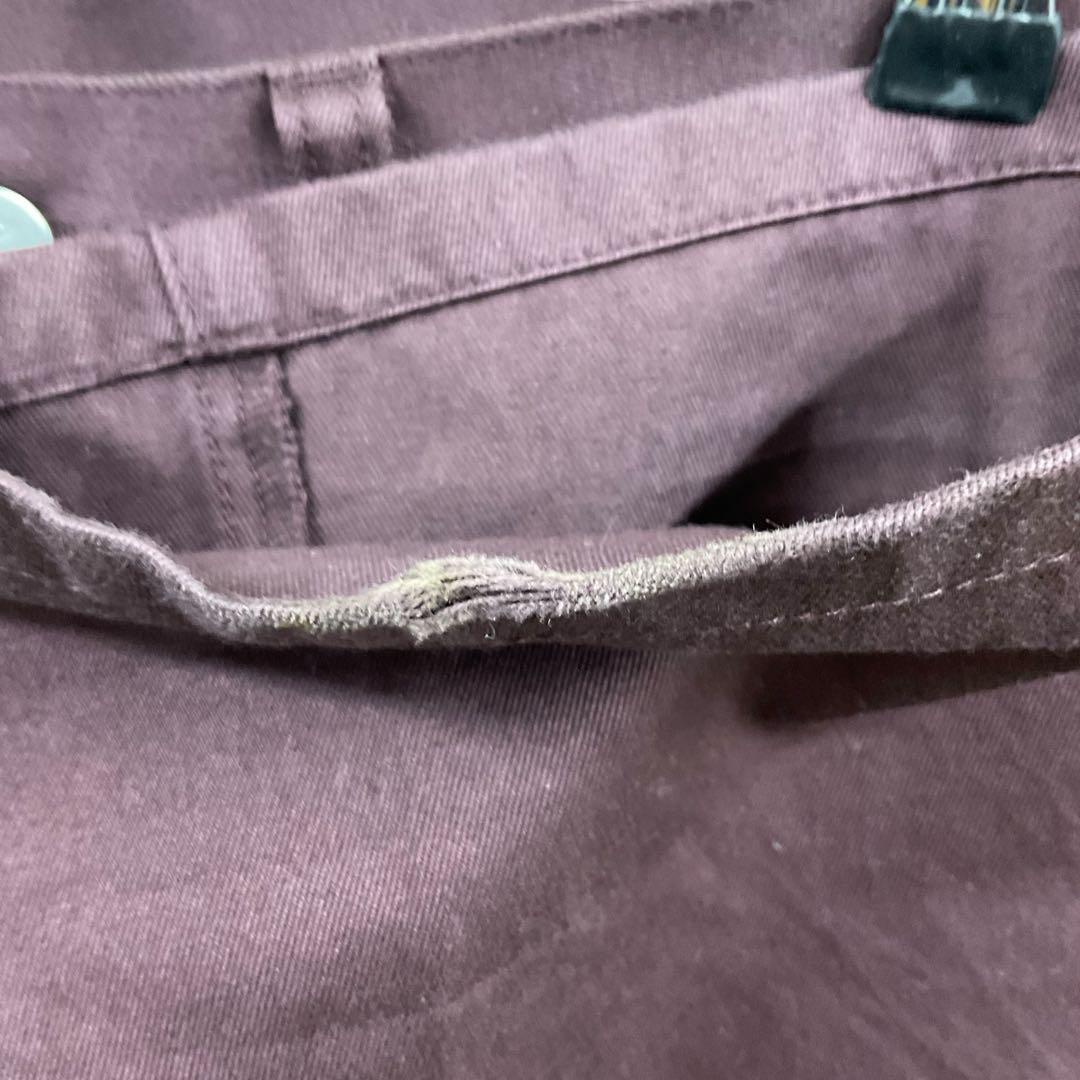 表の右太もも部分に黄色いシミあり。左裾近くに黄色いシミあり。