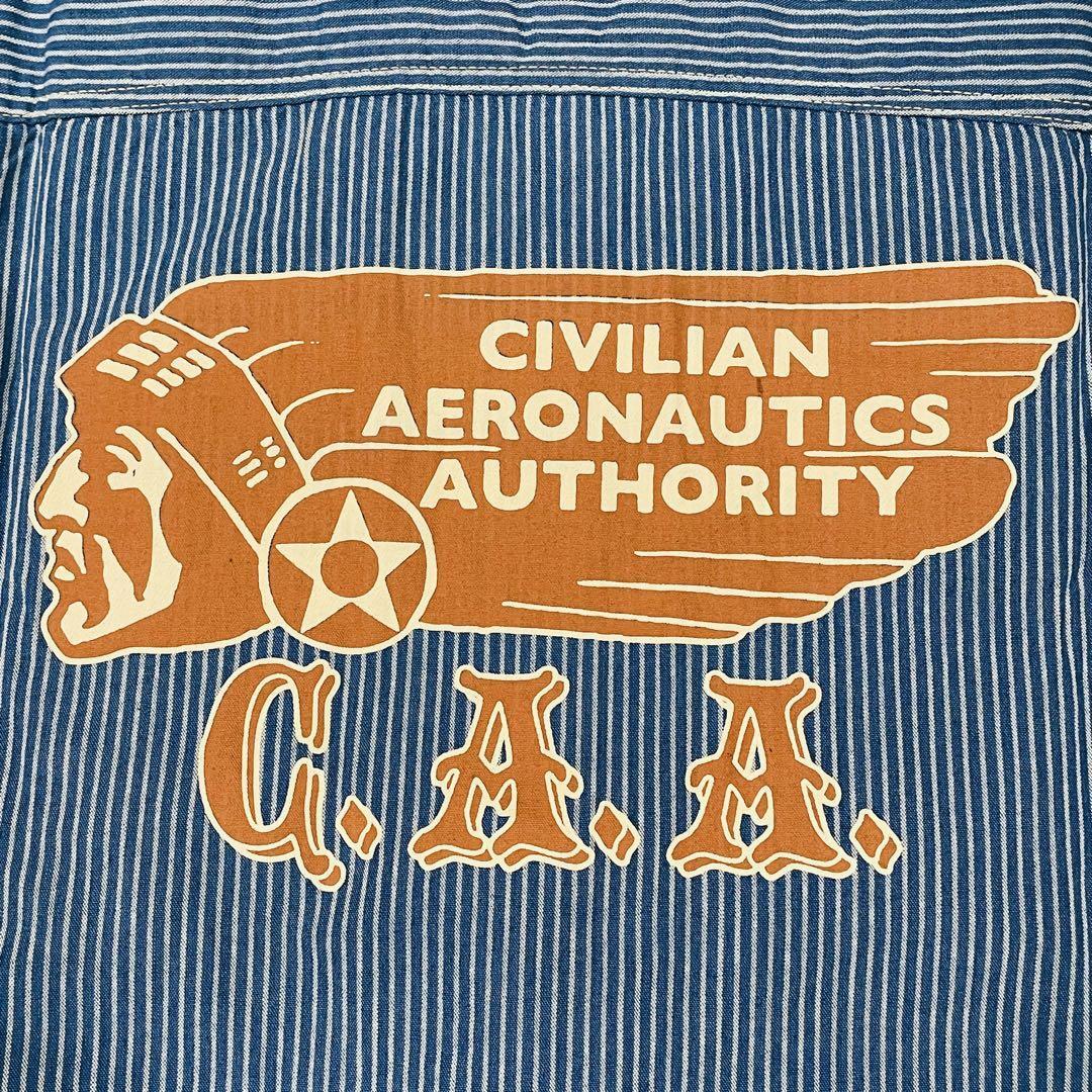 1930年、ヨーロッパで火を上げた世界大戦への米国参戦を睨み、フランクリン・ルーズベルト大統領の命により設立された民間パイロット訓練プログラム。その砦となったのが民間航空局(C.A.A.シビリアン・エアロノーティクス・オーソリティ)である。後にそうそうたるエースパイロットを輩出した同局のメカニック用ワークシャツをイメージしてカスタムした1着。