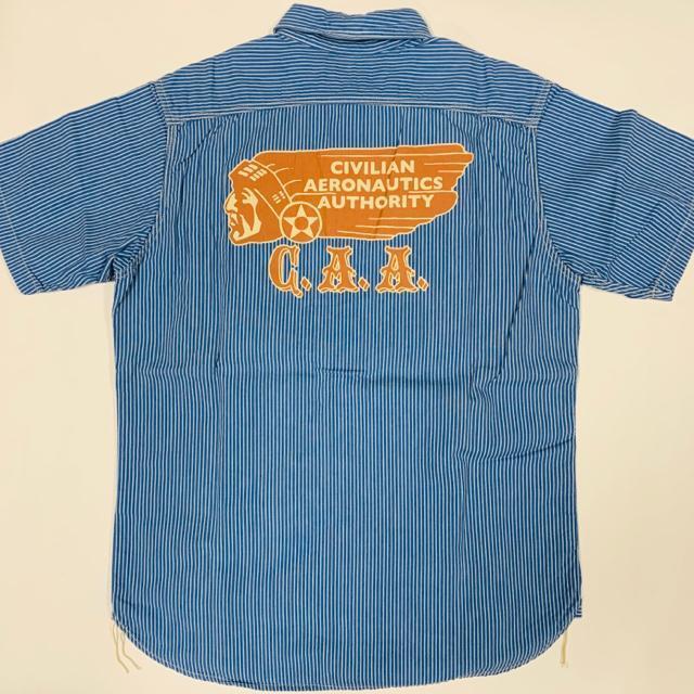 トイズマッコイ TOYS McCOY HICKORY SHIRT C.A.A. "CIVILIAN AERONAUTICS AUTHORITY" ヒッコリー半袖シャツ カスタムモデル シビリアン エアロノーティクス オーソリティ日本製 MADE IN JAPAN