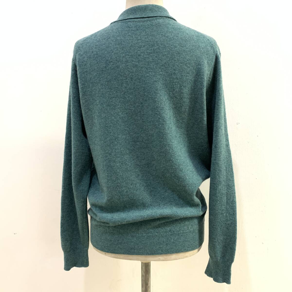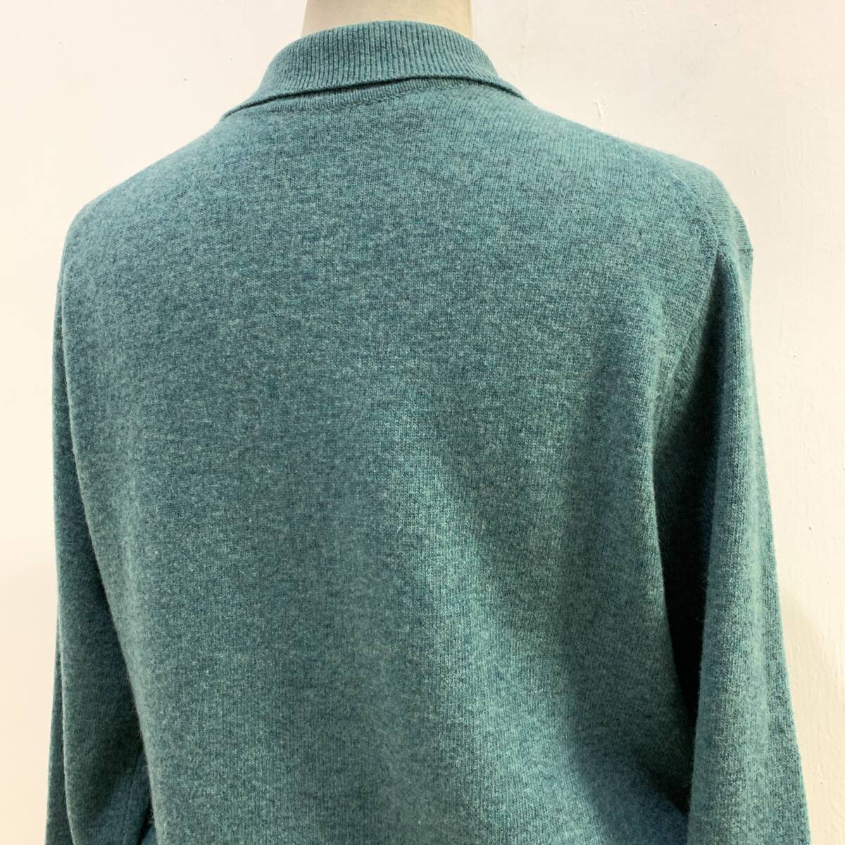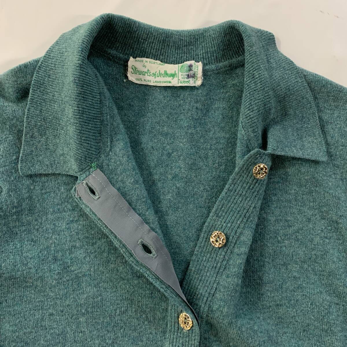 ☆Stewarts of jedburgh スコットランド製 ポロニットカーディガン ラムウール100% ブルーグリーン系 古着【レターパックプラス郵送可】Mの出品です。