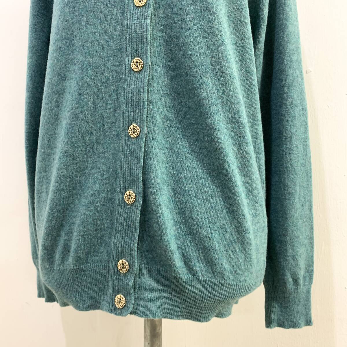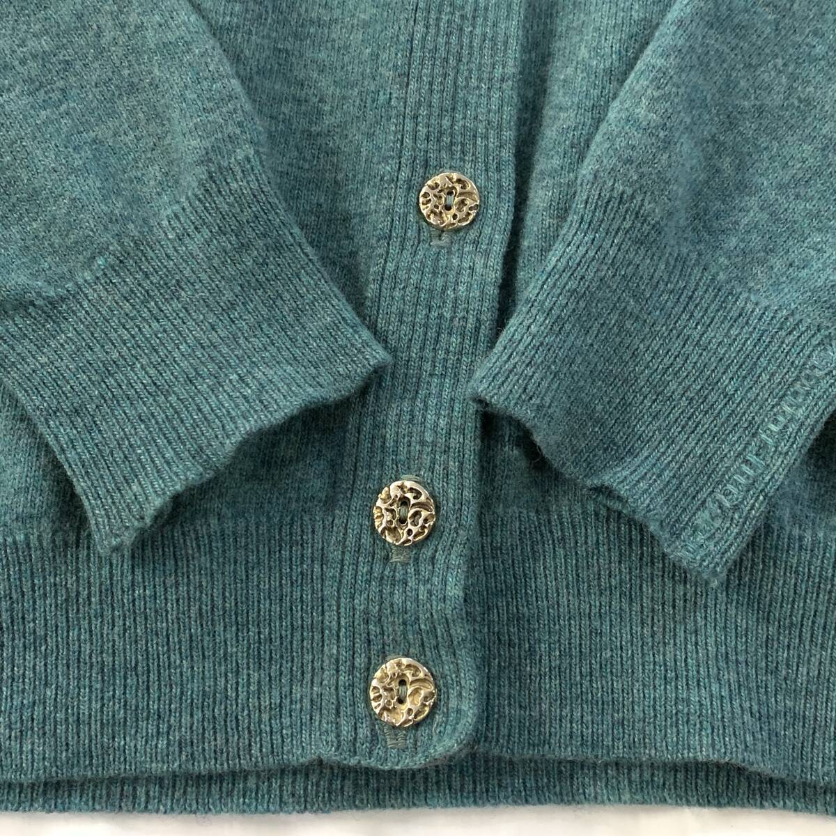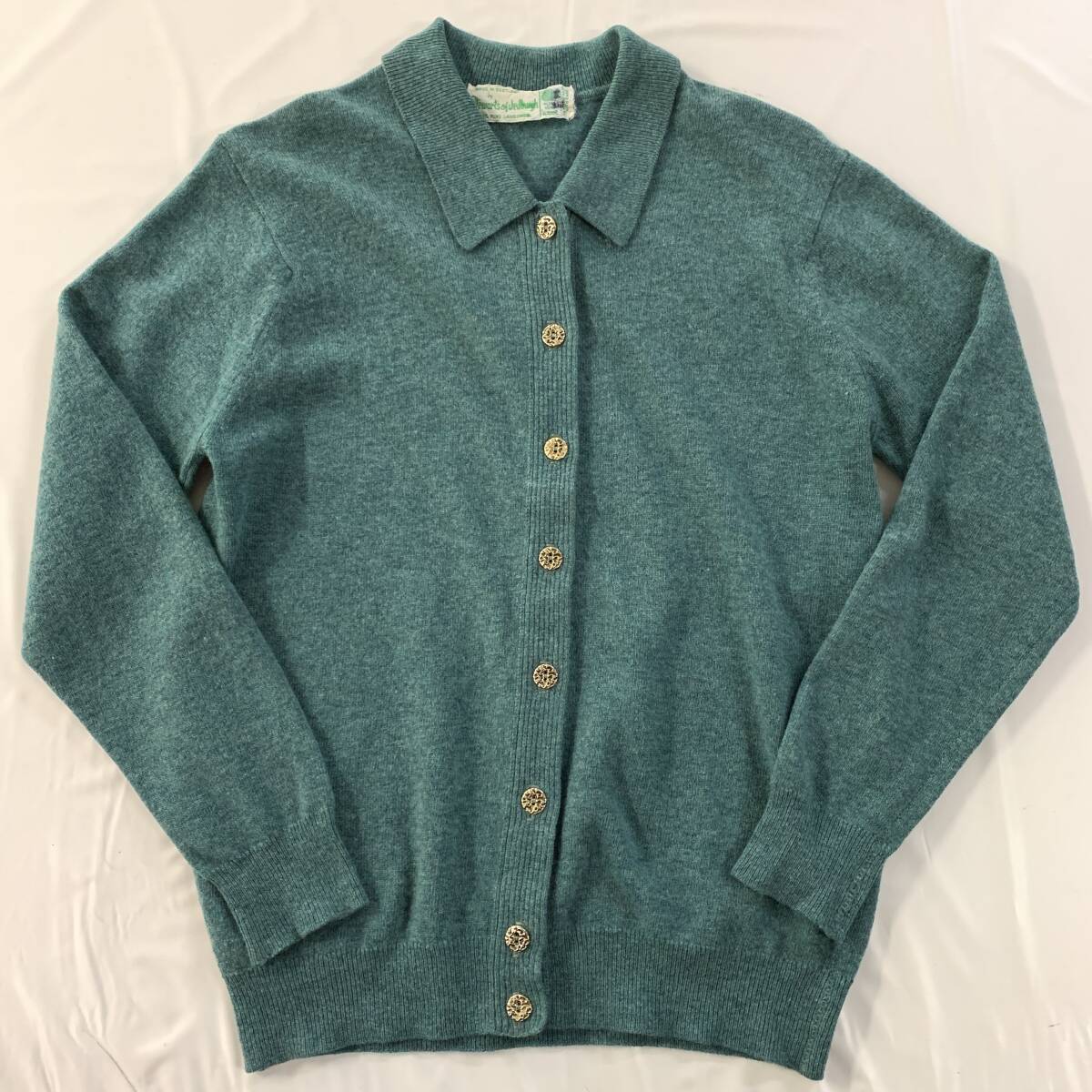 ☆Stewarts of jedburgh スコットランド製 ポロニットカーディガン ラムウール100% ブルーグリーン系 古着【レターパックプラス郵送可】M