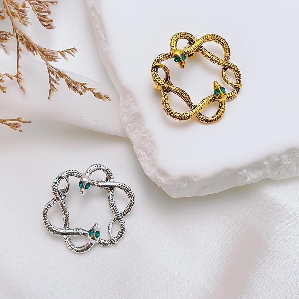【動物】 レトロ ステキ 十二支 双子 蛇 ブローチ/ゴールド