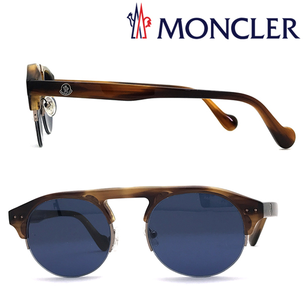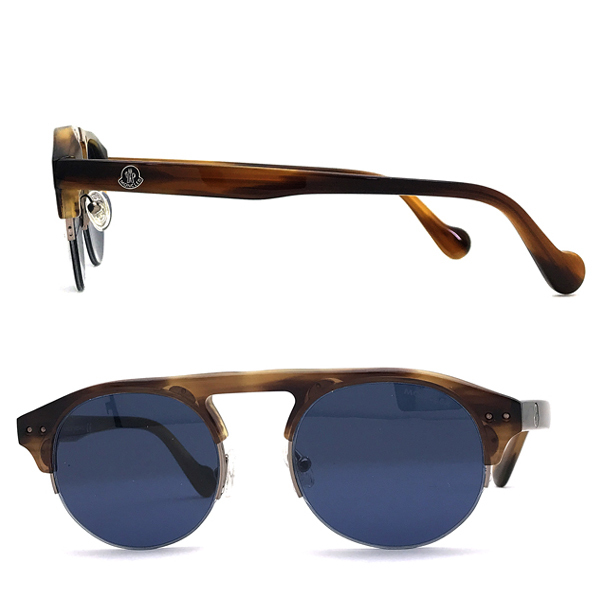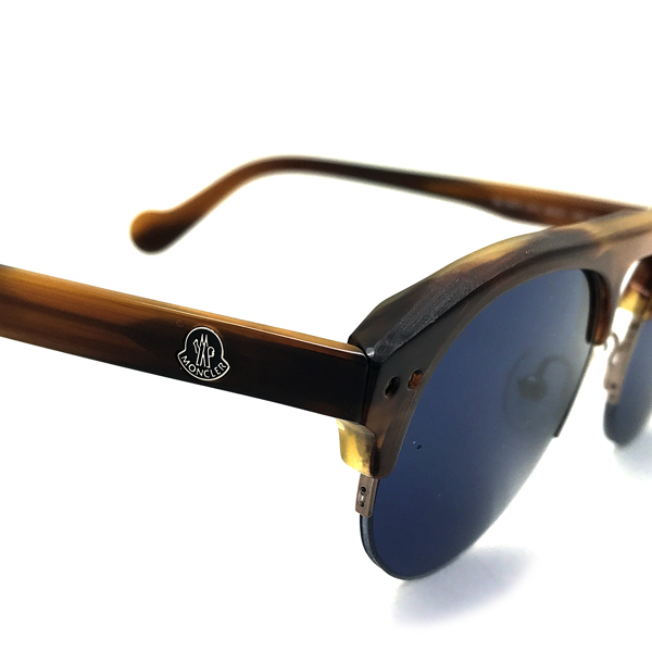 左右のテンプルに「MONCLER」ロゴマークあり。お洒落なデザインのナイロール型サングラスです♪