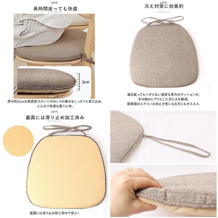 商品説明 | ・・ご家庭のダイニングチェアが、もっちりふかふかに♪おうち時間が快適になる「チェアクッション(2枚セット)」が新登場。 ・【座面をしっかりカバー】 ・角の丸い、ぽってりとした馬蹄形状のクッションが座面のカタチに優しくフィット!木製チェアなど、ナチュラルなインテリアに最適。 ・【長時間座っても快適】 ・厚み約3cmの高密度スポンジがおしりの重みをしっかりと受け止め、ふんわり快適な座り心地。 ・【冷え対策に効果的】 ・毎日座ってもヘタらない適度な厚みのクッションが、冬の朝のヒヤリとした冷たさを軽減。夏時期のエアコンの冷えが気になる方にもオススメ。 ・【椅子を傾けても、滑らない!】 ・裏面には滑り止め加工済みで安心!2組のストラップを背もたれの支柱に結べば、ズレを直す手間がなく楽ちん。 ・【ご家庭でお洗濯OK!】 ・クッション背面のファスナーを開いてスポンジを取り出し可能。カバーを取り外してこまめにお洗濯できるから、いつでも清潔。 ・【サラッと快適な素材感】 ・カバーの表生地は、カジュアルな風合いでお部屋を明るく演出する杢調ポリエステル素材。裏面は通気性の高いメッシュ生地で仕上げて、オールシーズン快適。 ・【ダイニングセットに最適】 ・2人掛け用のダイニングテーブルが素敵に華やぐ♪手軽なコーディネートを実現する同色2点セット。 ・【ご家庭でもオフィスでも】 ・ダイニングチェアはもちろん、オフィスチェアや応接室用のチェアなど、様々なシーンで大活躍。 |